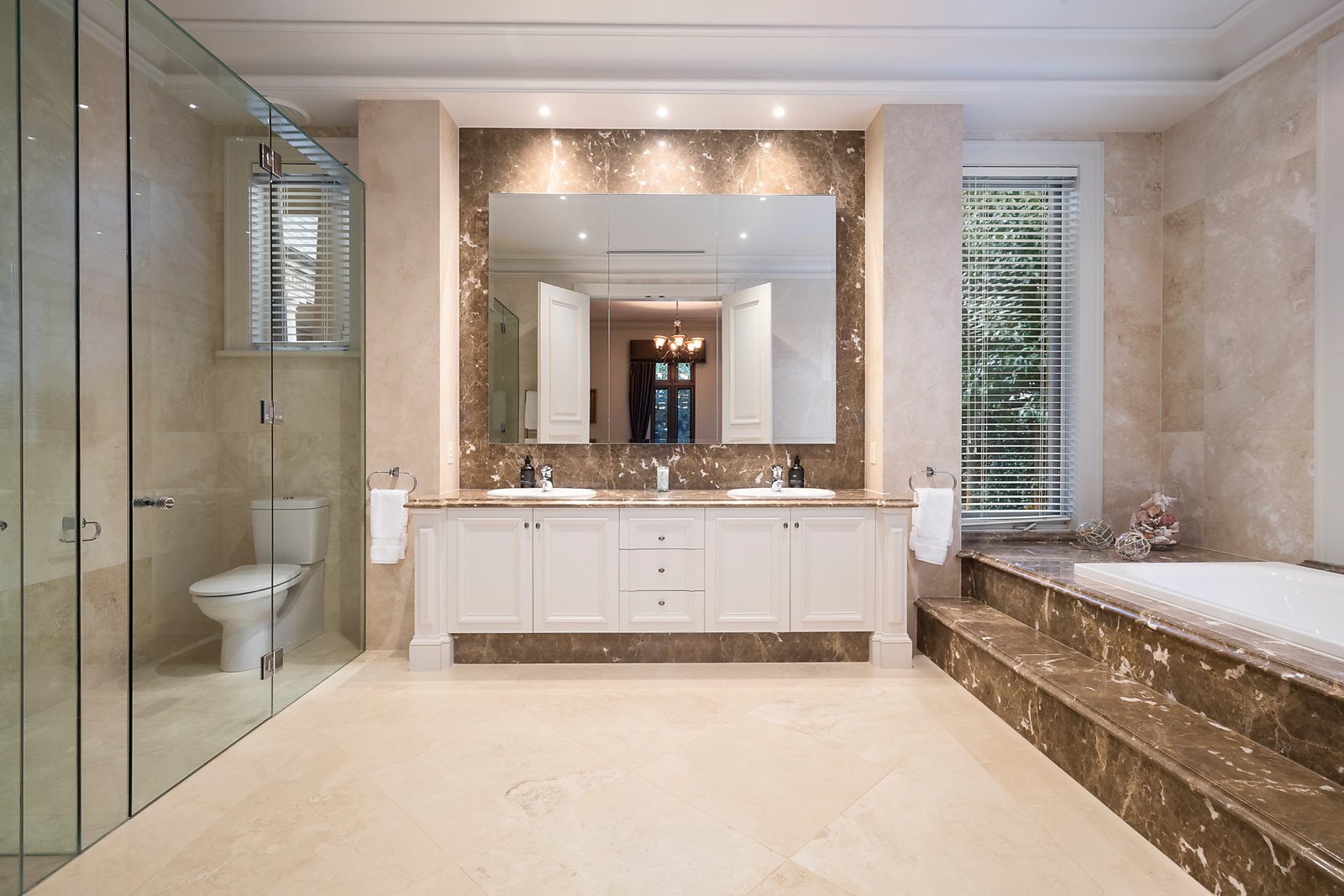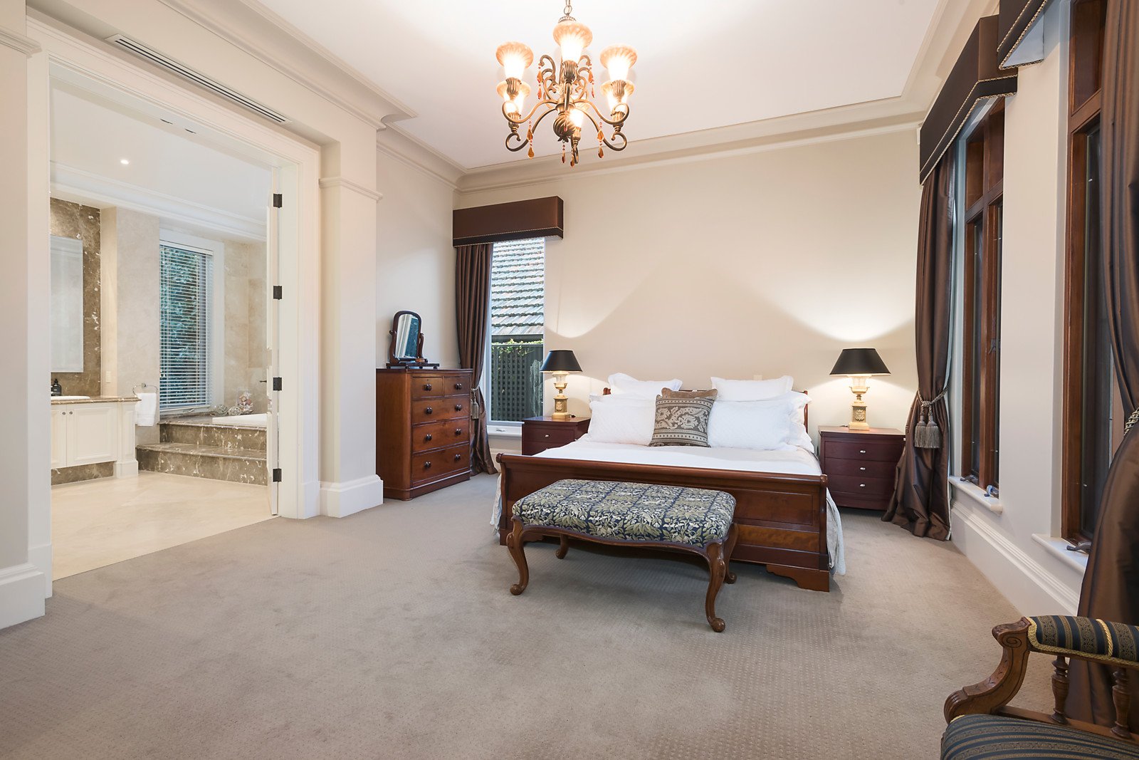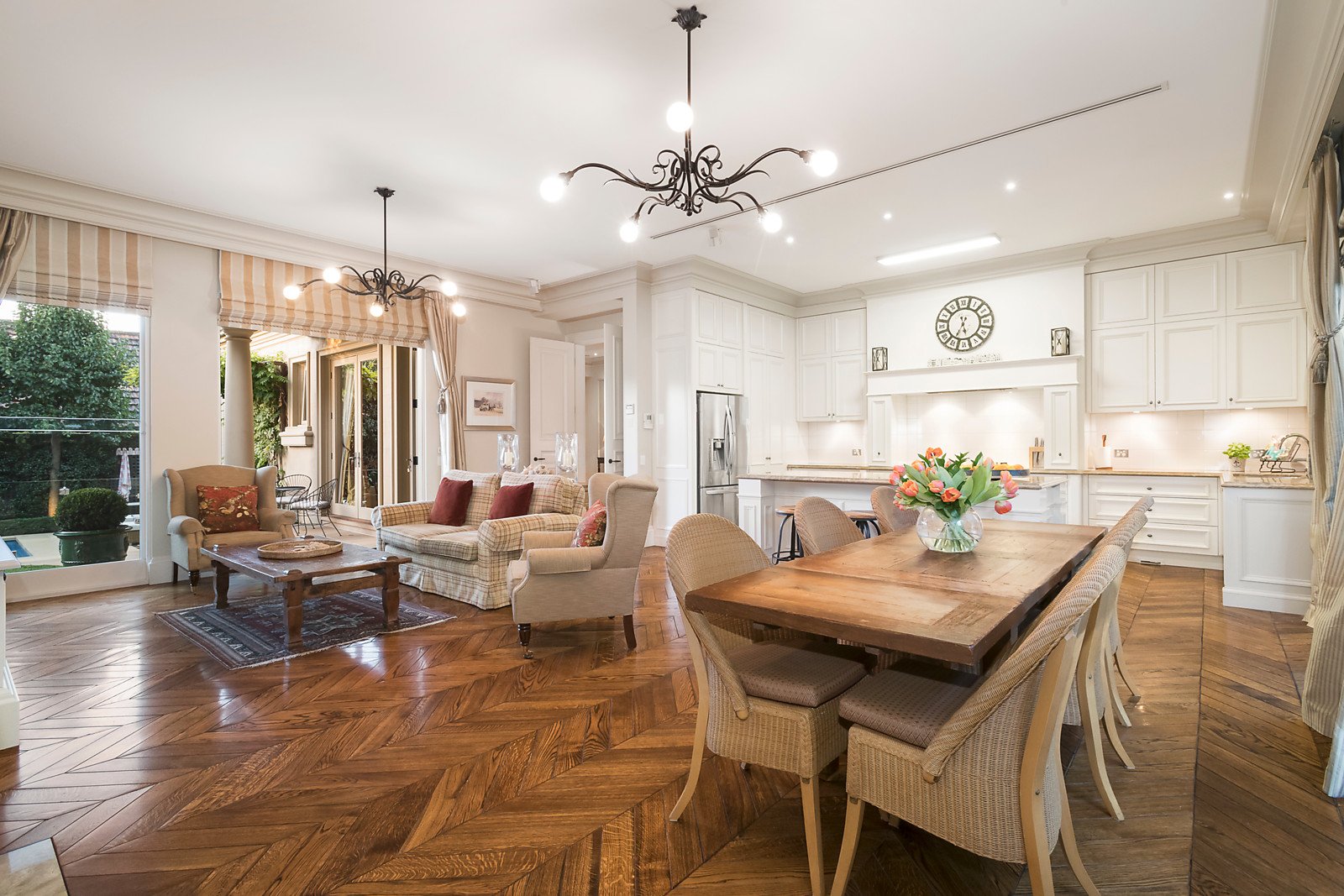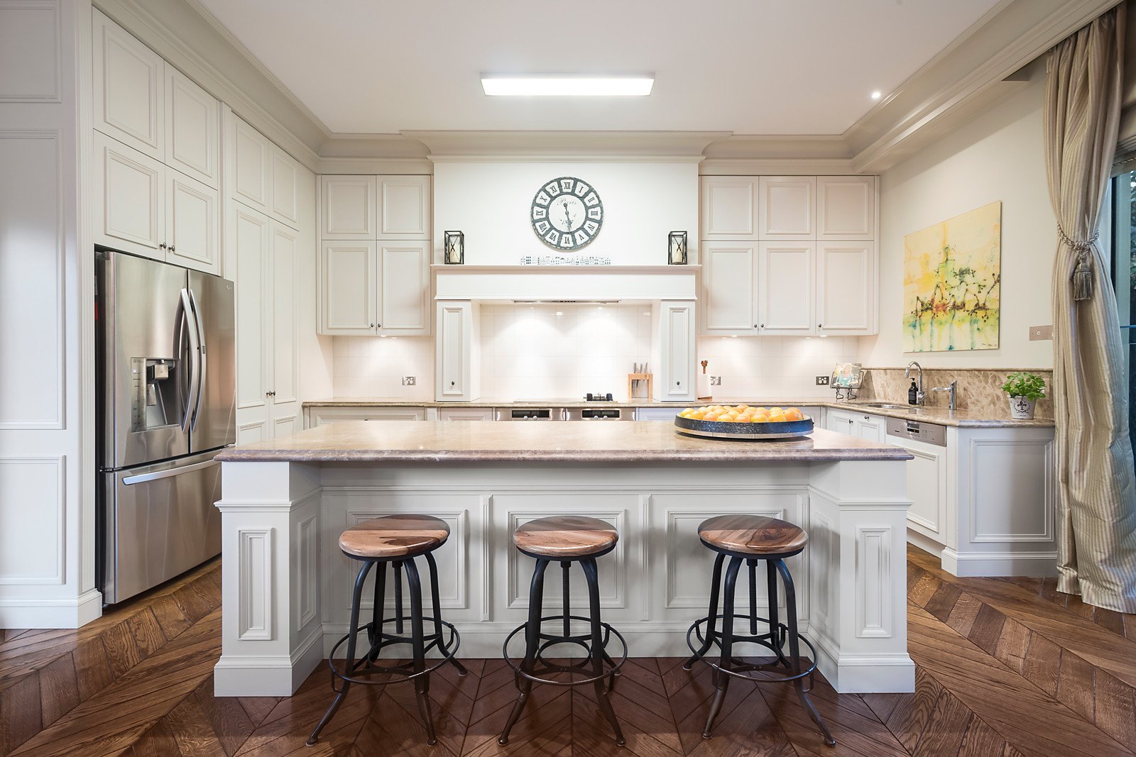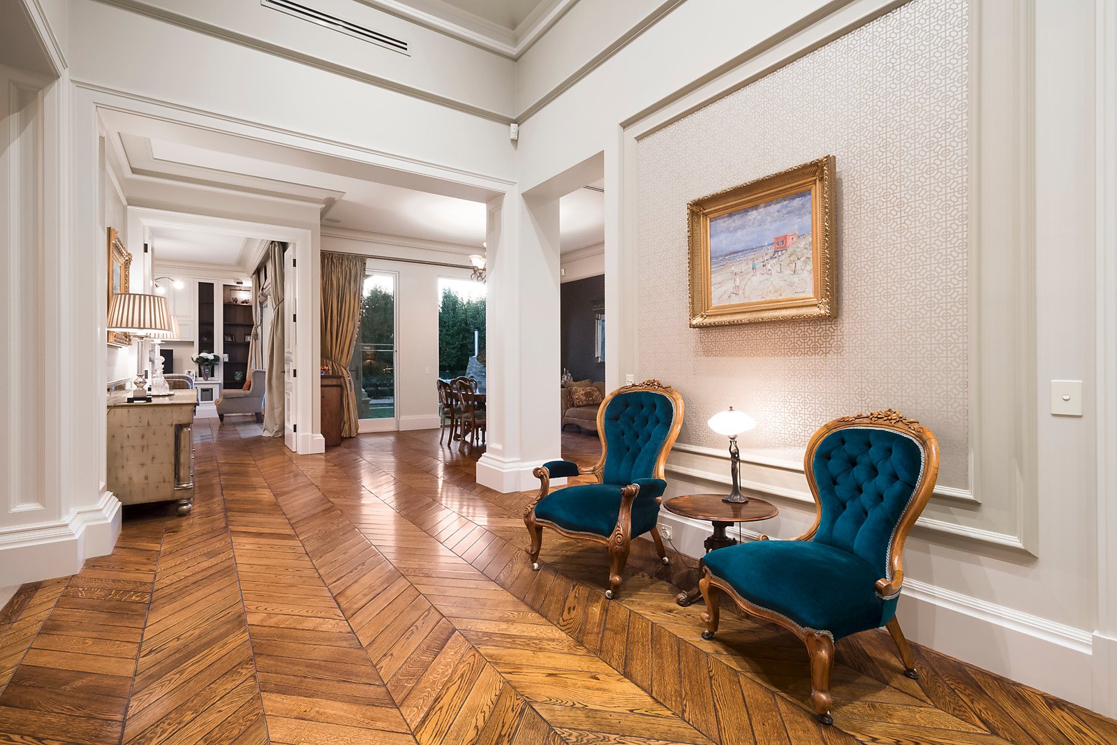 Solid Oak doors open to beautiful French Oak herringbone parquetry floors leading through a wide entrance hall with a vaulted ceiling to a study, a formal sitting room and formal dining; through to a superbly proportioned family living area incorporating a stylishly appointed kitchen with prestige Miele appliances opening to a north-west facing private garden and the alfresco areas. Complemented by four zoned bedrooms, sumptuous main with dressing room and ensuite and three with ensuites plus a powder room and rear laundry. The lower level features the indoor entertaining amenities including a cinema, cellar, gym, rumpus/billiards room, storeroom, workshop and remote garaging for up to five cars with a turning area. Other comprehensive appointments include video intercom, alarm, hydronic heating, split-system air conditioning, gasLFPs, ducted vacuum, elevator, Bose surround sound, extensive internal storage including attic & underground tank 10,000ltrs+auto watering.