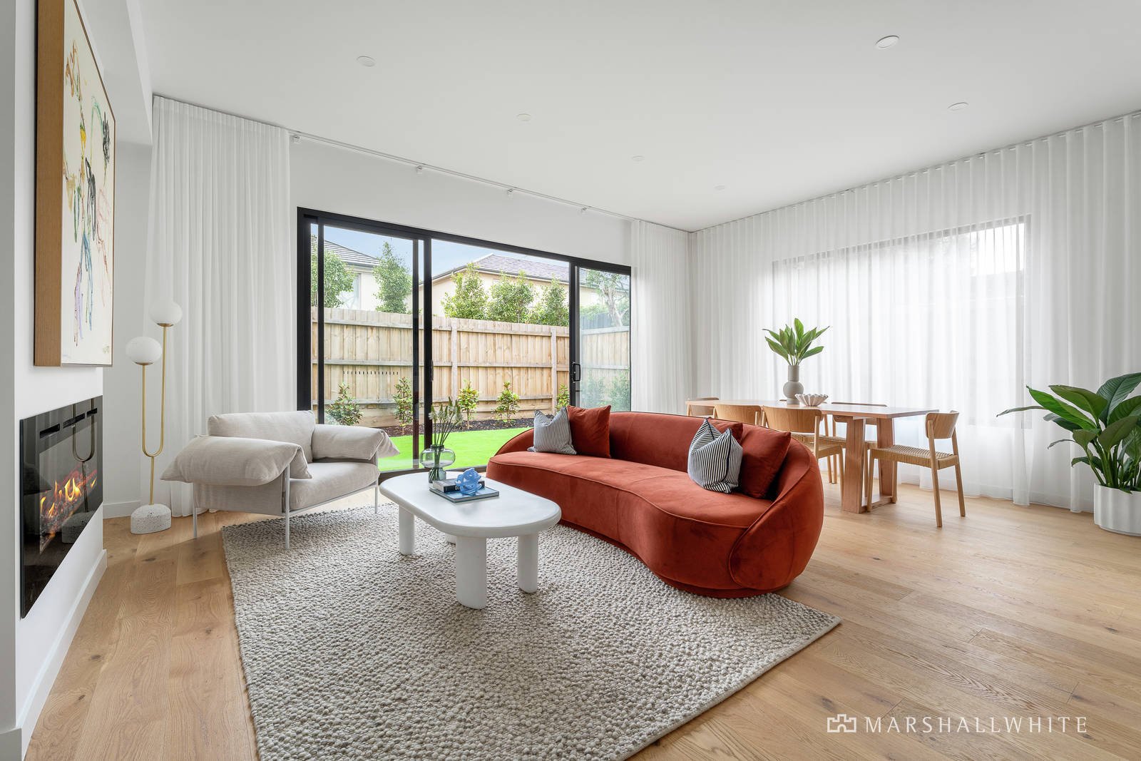 This stunning example of a brand new contemporary town residence was designed with creativity and a commitment to quality in mind; offering the best in low maintenance living in a quiet tree-lined street in the prized Balwyn High zone. Resulting in a property which radiates a wow factor from its striking, elevated facade and crisp white interior featuring large windows delivering an abundance of natural light to its two levels. Wide Engineered Oak floors lead to a brilliantly appointed stone and prestige Miele kitchen with an adjacent butler's pantry and laundry. An expansive dining and living area flow through sliding doors to a landscaped garden - perfect for a relaxed lifestyle. Downstairs also hosts a powder room and a spacious bedroom with ensuite, that can be easily be transformed into an additional living space, media room or study. This is complemented by an upstairs retreat and three additional bedrooms, all with built-in robes, study nooks and ensuites, including a generous main bedroom with dual access WIR. Other comprehensive features of this stylish home include an alarm, keyless entry and intercom system, 3.0m ceilings downstairs and 2.7m upstairs, premium window furnishings, tufted loop pile carpets, fully-tiled bathrooms, air conditioning throughout, fireplace (living room), ample storage, 7-star energy rating, water tank, remote double garage with polished concrete floors and secure internal access.
