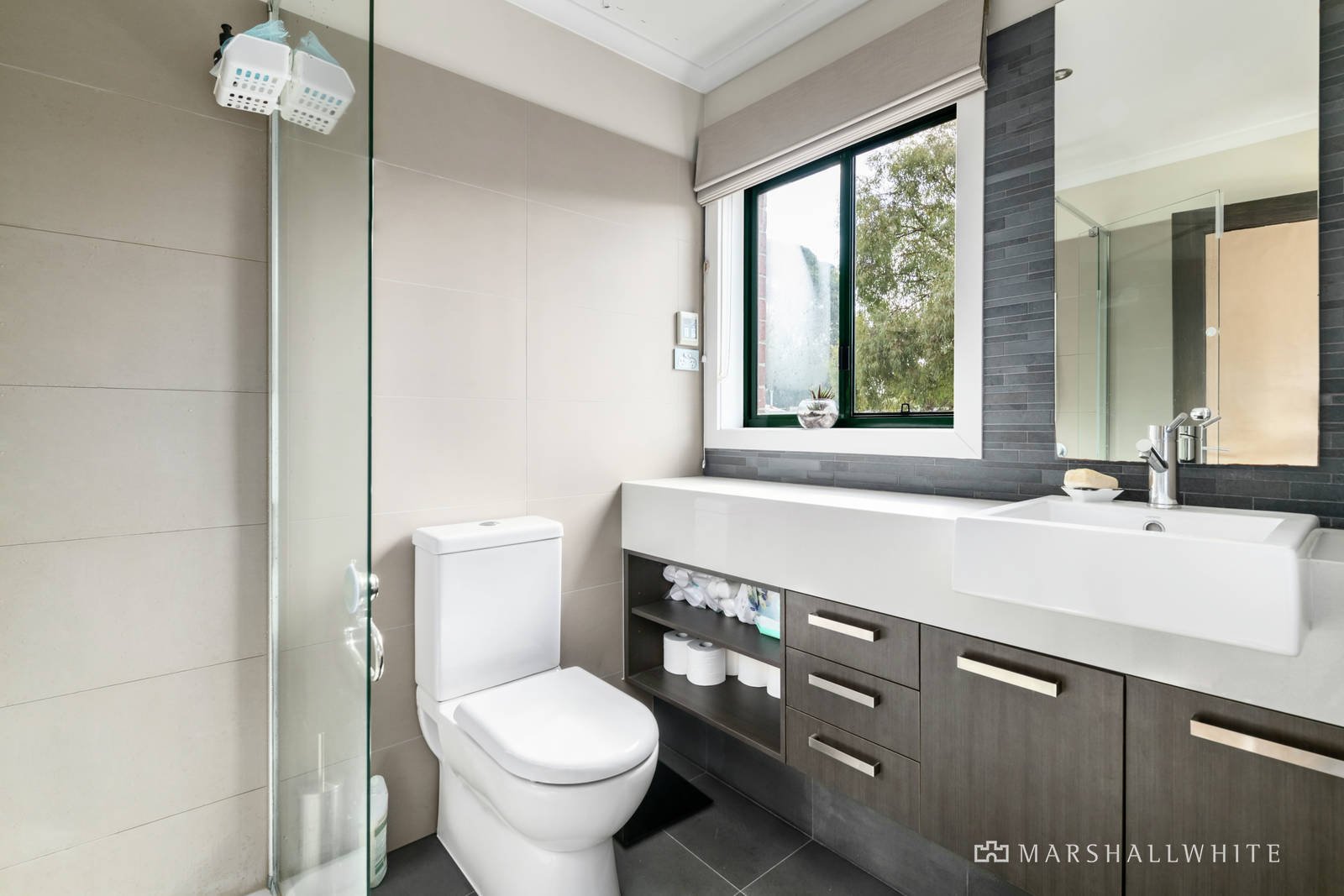 Upstairs, a pair of robed bedrooms each enjoy the reality of their own bathrooms / semi-ensuites, whilst there is a substantial laundry and a powder room to service the living areas. Further highlights of this brilliantly conceived home include a lock-up garage, gas ducted heating, split system air conditioning, surround sound, a security alarm and temperature-controlled gas hot water.
