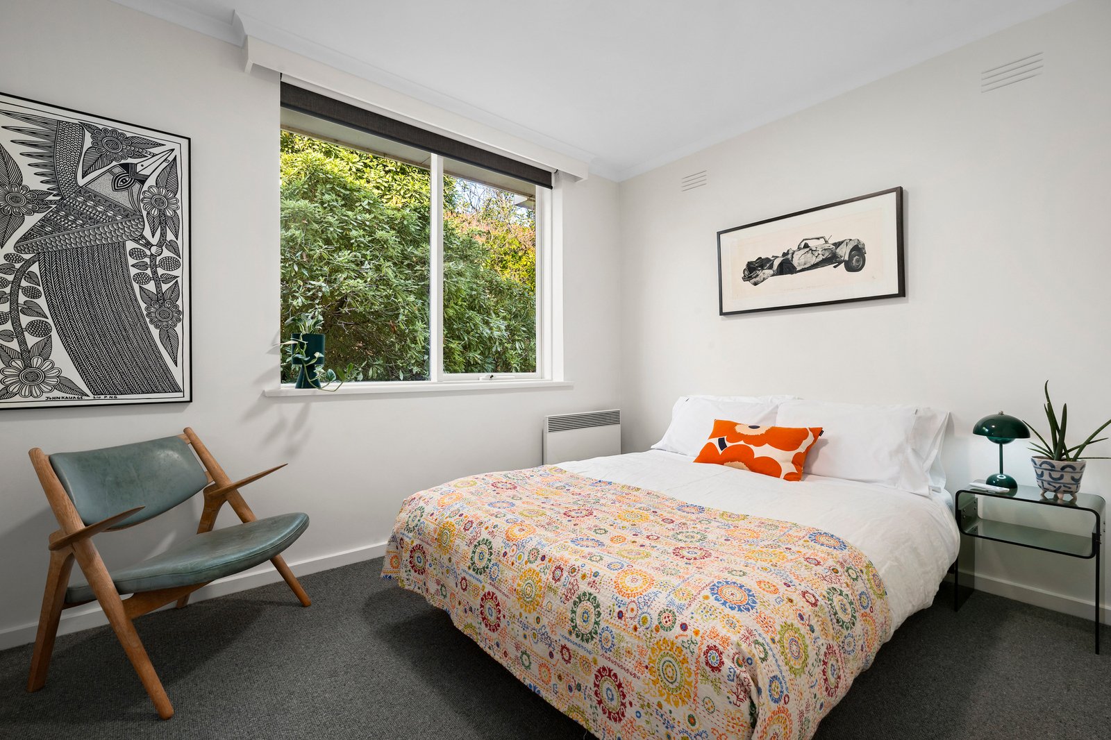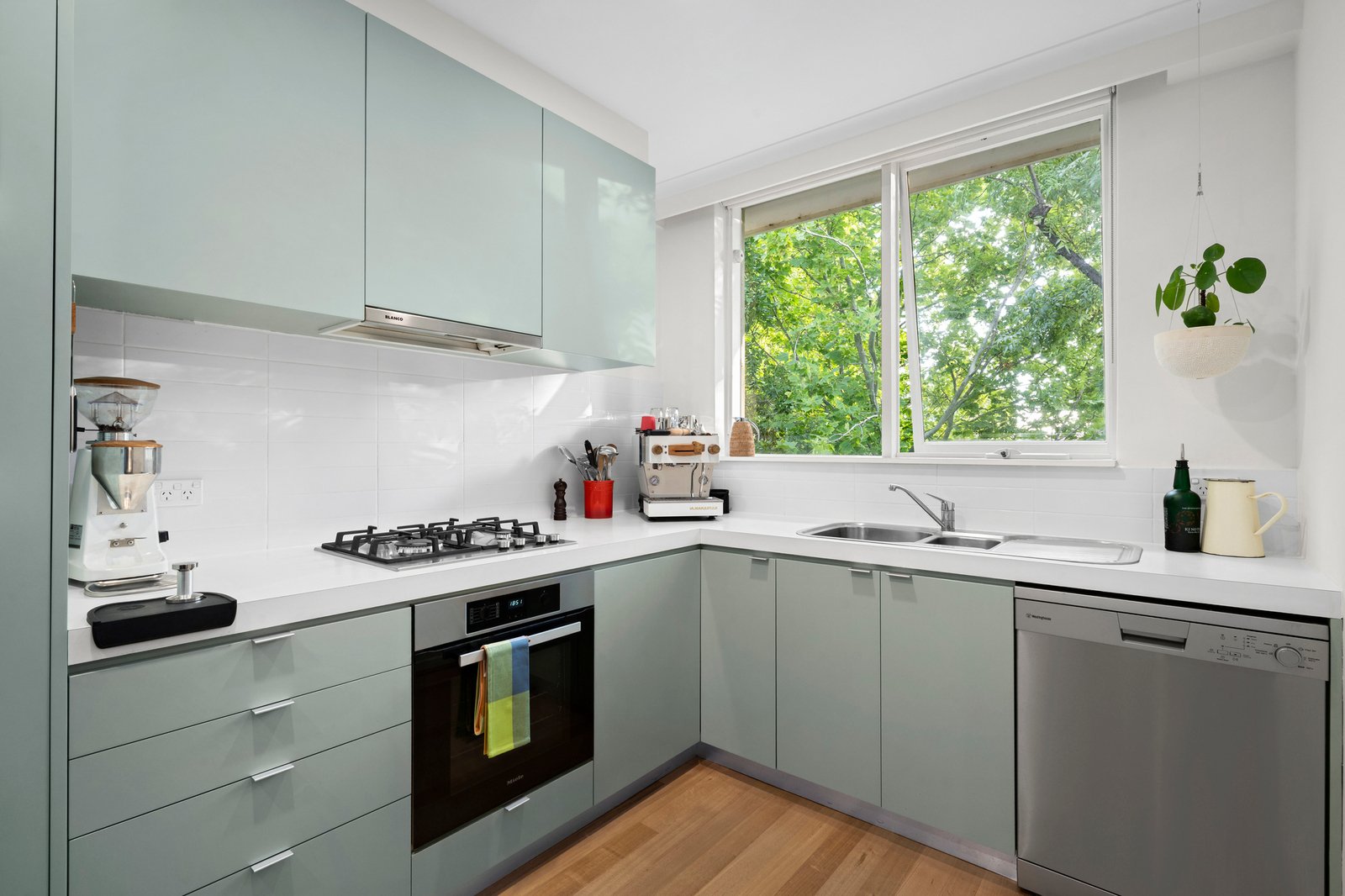 The quintessential Elwood classic set among the treetops of one of its most sought-after streets, this flawless, two bedroom apartment has been tastefully renovated and opened-up to merge its mid-century character with a lofty, light-filled and airy style of contemporary living. Set on the second floor / top floor, where huge light-letting windows frame delightful leafy vistas to soothe the senses, the home enjoys a super central, ‘best-of-both-worlds’ setting near the sanctuary of St Kilda Botanic Gardens and all the easily walkable urban convenience of Acland Street, Carlisle Street and Elwood Village.