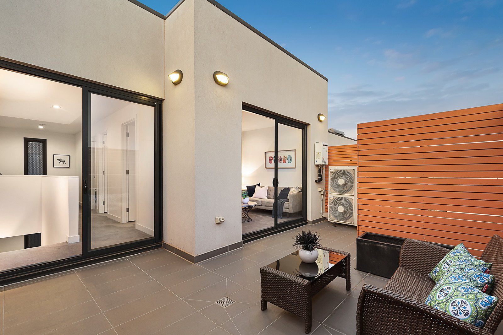 The attention to detail is evidenced by the high ceilings and wide Oak floors in the living/dining room and gourmet kitchen opening to a private courtyard. The main bedroom with lavish en suite and walk in robe is accompanied by two additional bedrooms with robes, two stylish bathrooms and retreat/4th bedroom opening to a rooftop terrace.