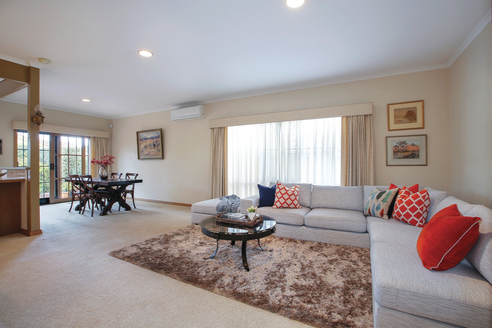 A light-filled main bedroom with a leafy outlook includes ensuite and walk-in robe and is complemented by a further two bedrooms and family bathroom. Additional features include laundry room, ducted heating, remote controlled alarm system, water tank, sprinkler system and two-car garage.