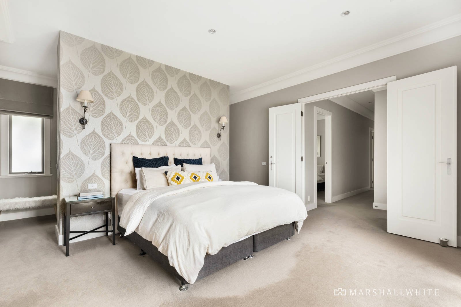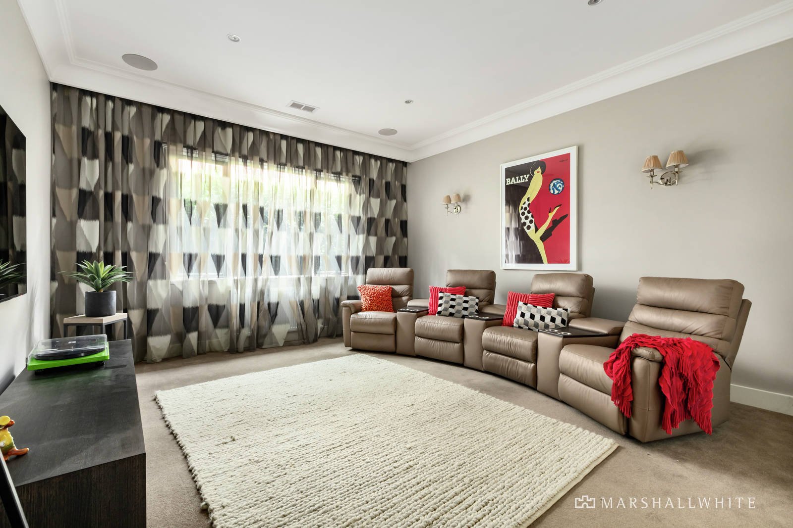 Setting an impactful first impression, the welcoming entrance foyer with its oak inlaid floor and 3m ceiling introduces a spacious home office and fabulous media room with surround sound. The expansive open plan living and dining room features a gas log fire and sublime gourmet kitchen appointed with VZUG appliances including a combination steam oven and induction cooktop, stone benches and a butler's pantry. Ideal for all weather outdoor entertaining, sliding doors open the living to a large, covered Travertine tiled al fresco terrace with heaters and weather blinds overlooking the entirely private northeast landscaped garden with solar heated self-cleaning pool and water feature. The separate accommodation wing comprises two double bedrooms with robes and a stylish bathroom and, overlooking the garden, the lavish main bedroom with walk through robes and a designer en suite.
