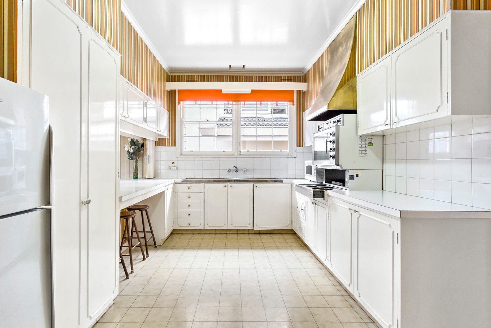 Northern sunlight streams across the deep front garden and verandah into the desirably large lounge room with open fireplace. Sweeping around to the dining room, then into a lovely family room, these spaces lead outside to a terrace and private backyard.