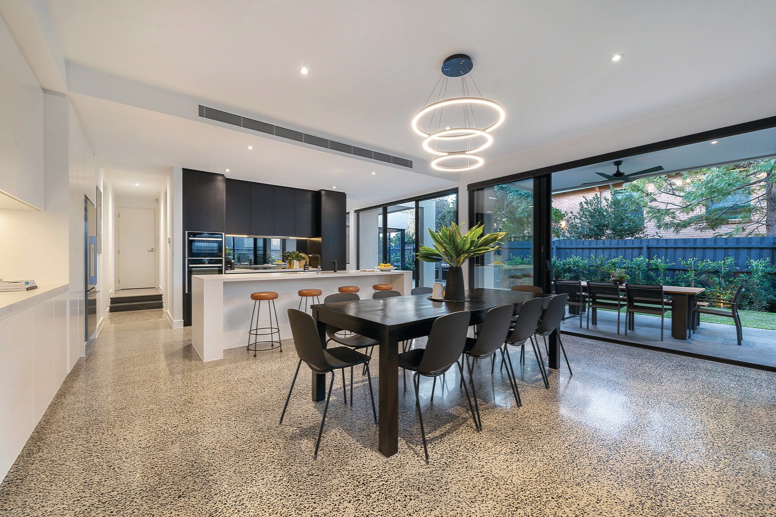 Impressively showcasing luxurious finishes, spectacular proportions and contemporary style, this newly built architecturally designed residence delivers an enviable inner urban setting. Behind an elegant sand rendered façade, soaring ceilings and polished concrete floors define the spacious ground floor living domain. A superbly appointed state of the art kitchen features stone benchtops, smoked mirror splashback, a suite of Neff appliances including induction cooktop, dual ovens with steam, Billi water filtration system, soft close cabinetry, Butler's pantry plus two fully integrated Asko dishwashers. Open plan living and dining is thoughtfully designed to provide a seamless connection to the generous alfresco boasting integrated barbecue with awning, breakfast bar and fully landscaped gardens with automatic irrigation. Additionally the ground floor encompasses a formal living room with bespoke bar, light filled study, luxurious bathroom featuring marble detailing and Gessi matte black tapware plus well equipped laundry with access to internal courtyard and mud room with 20 amp power capabilities.