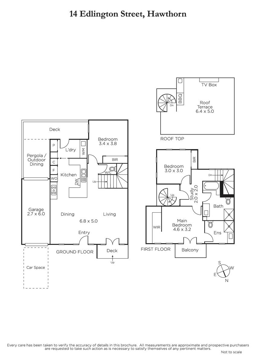 This smart and stylish home spans three levels featuring beautiful solid Blackbutt flooring, a spacious north-facing open-plan living and dining room opening to the front garden, incorporating a sleek kitchen with Caesarstone benchtops, prestigious Miele appliances, F & P integrated twin-draw dishwasher and 2PAC cabinetry with an adjacent laundry leading to a rear pergola/outdoor dining area; plus a generous downstairs bedroom and a powder room. The second level has a further two bedrooms, main with a large WIR, pristine ensuite and French doors opening to a Juliette balcony; plus a family bathroom and study nook; leading to a circular staircase accessing the rooftop terrace. Other comprehensive features of this impressive home include double glazed windows and doors throughout, alarm, ducted heating, cooling and vacuum, A-Bus integrated surround sound, fully-tiled bathrooms, roof storage, carport with tandem off-street parking and period shingle Asphalt tiles and period solid brickwork to match the street heritage overlays.