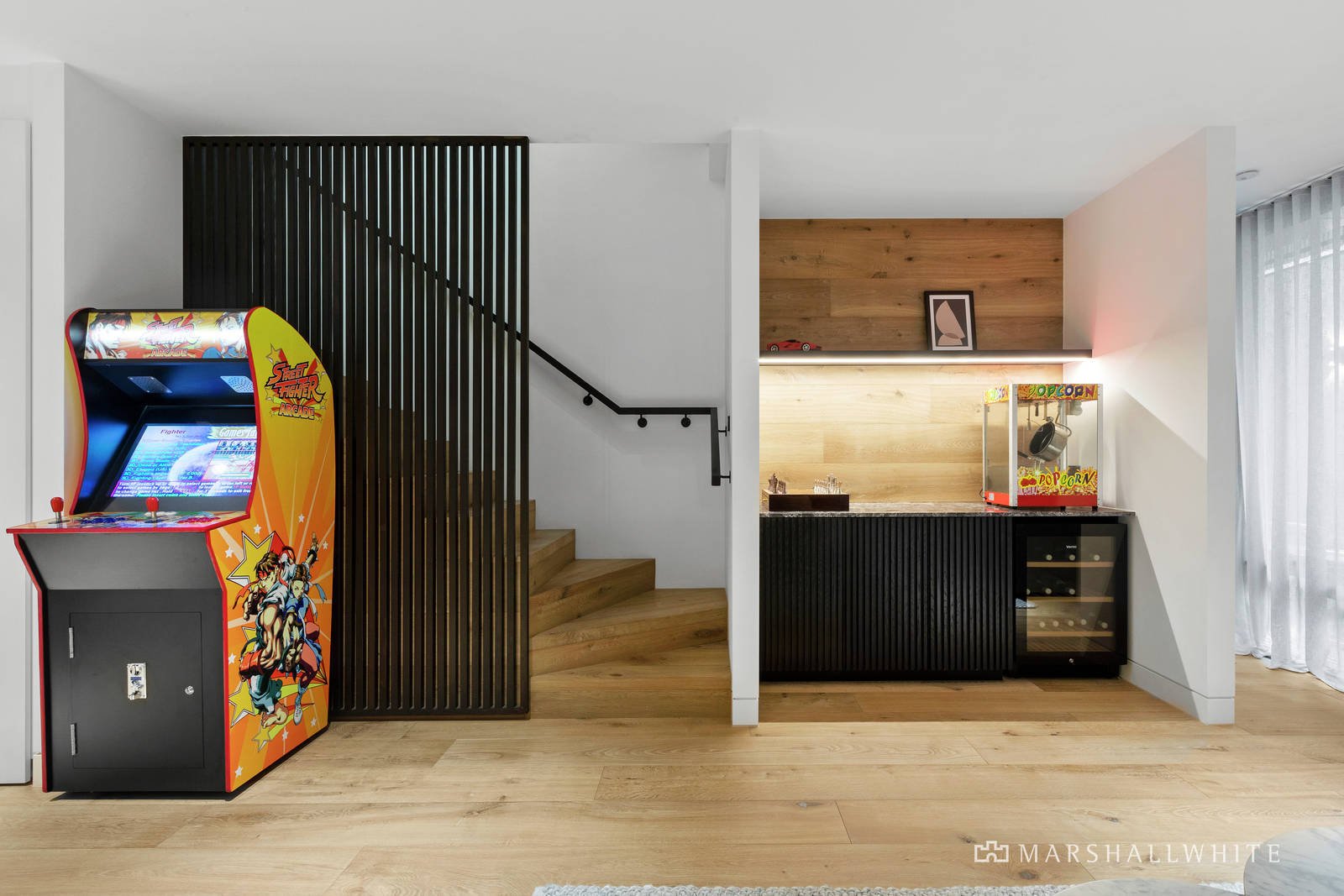 Descend to basement level, where an eight seater cinema with surround sound and a lounge room with bar allow for large scale entertaining and extra space for growing families.