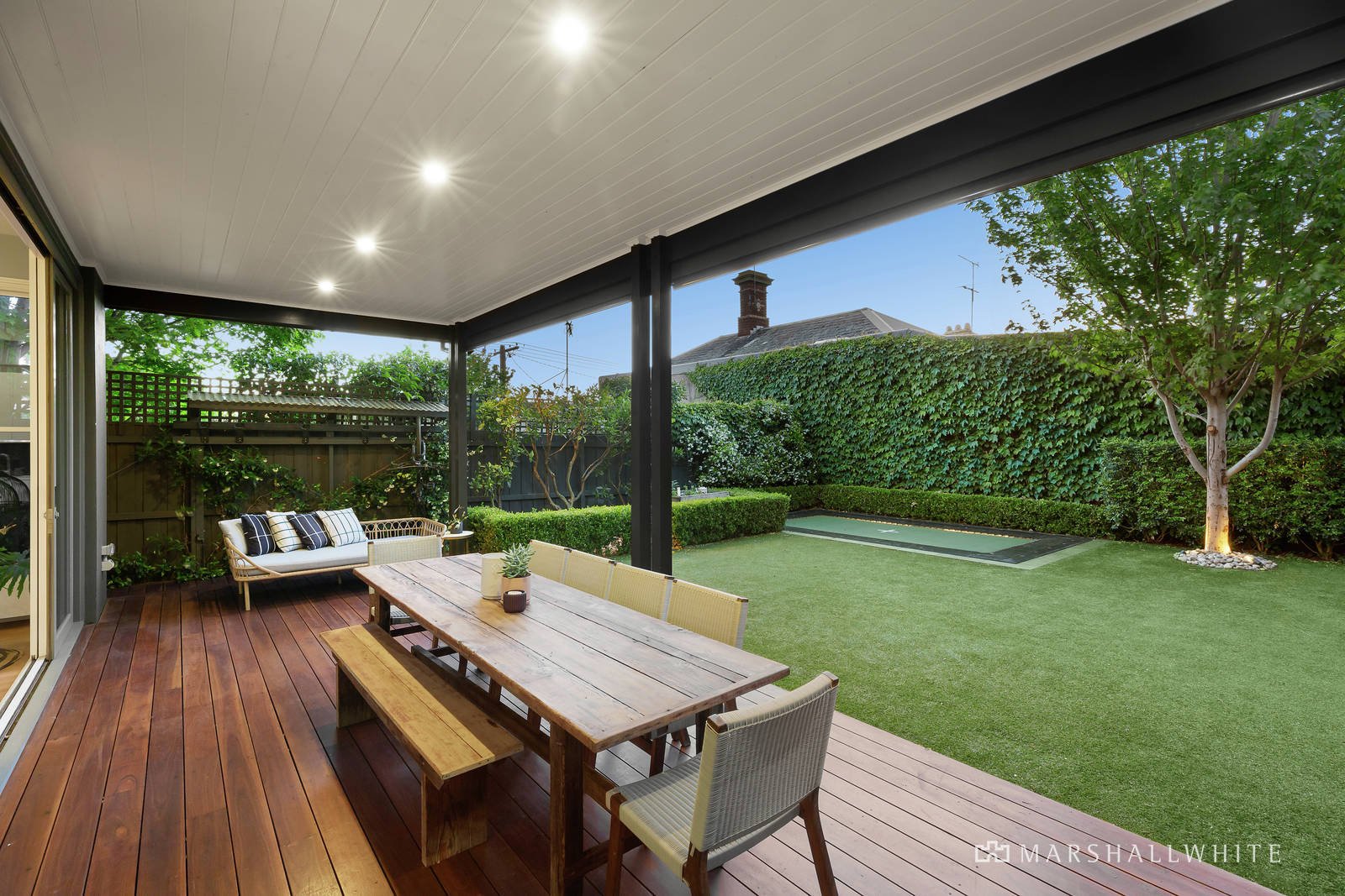 Complete with sweeping city views, the upper level features three delightfully spacious bedrooms (all with ample BIRs and ceiling fans) and family bathroom, with a sizable children's retreat. Outdoors, the stylishly sculpted north-west facing yard is a haven for entertaining, complete with expansive deck and in-built trampoline. Superbly positioned in a tranquil, family-friendly pocket of Hawthorn, with easy access to public transport, just 8 minutes by train from Hawthorn station to the CBD, and surrounded by parks, cafes, restaurants and schools.