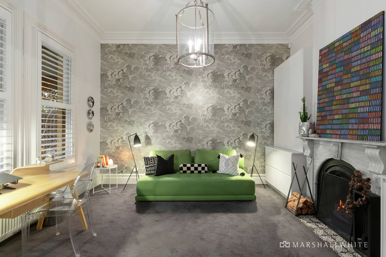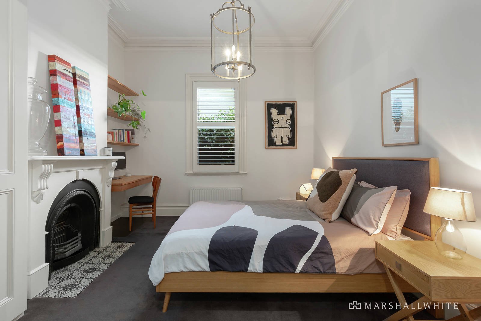 Beyond the distinctive Hawthorn brick facade, the beautifully renovated Victorian-style space include a large study with in-built storage, two downstairs bedrooms and powder room. Filled with light from the stunning bay windows, the master embodies understated style, and opens to an extensive walk-in-robe and full-sized ensuite bathroom with marble-tiled floors and stone benchtops. Stunning designer hardwood floors flow through to a striking open plan living, dining and kitchen space, where every inspired design detail has been carefully considered. The intuitive kitchen design features stone benchtops, marble features, Miele appliances and a large butler's pantry, with the well-appointed laundry and drying room cleverly tucked away.