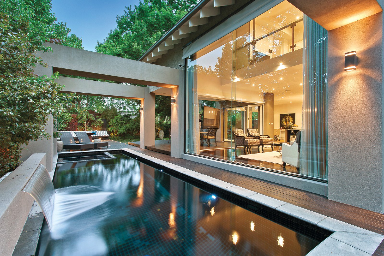 Displaying exceptional designer flair, the impressively proportioned interior spaces featuring high ceilings, plantation shutters and customized joinery all enjoy picturesque garden outlooks. Dark timber floors flow through the wide reception hall to a gracious sitting room and formal dining room both warmed by gas fireplaces. A soaring void accentuates the scale of the light filled living room (gas fireplace) and inviting dining area surrounding a state of the art gourmet stone kitchen with butler's pantry and fitted wine room. Bi-fold doors open the living areas to the absolutely stunning private landscaped northeast gardens designed around a majestic Oak tree and featuring a large covered al fresco deck, built in BBQ and solar heated pool and spa. The glorious main bedroom with lavish en-suite and walk in robe and a study are serenely set downstairs while a sensational children's zone upstairs comprises three double bedrooms with built in robes, a huge rumpus room or 5th bedroom, sunny retreat and stylish bathroom.
