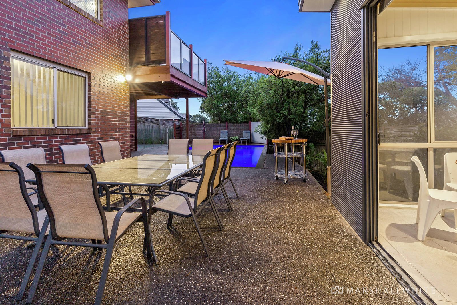 Outside provides paralleled class and luxury and the very best entertainment options for all ages. This inspired space showcases the stunning self-cleaning pool, a pool house and incorporated basketball hoop. Various seating areas are provided around the pool and by the undercover alfresco space. Exposed aggregate concrete here is stylish, slip resistant and negates the need for a mower!
