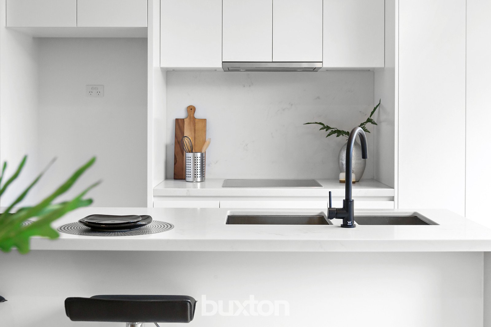 The substantial open-plan lounge and dining will delight, with a glistening stone kitchen with Miele appliances and full-height, full-width tri-stacker doors sliding open to reveal an enticing paved alfresco.