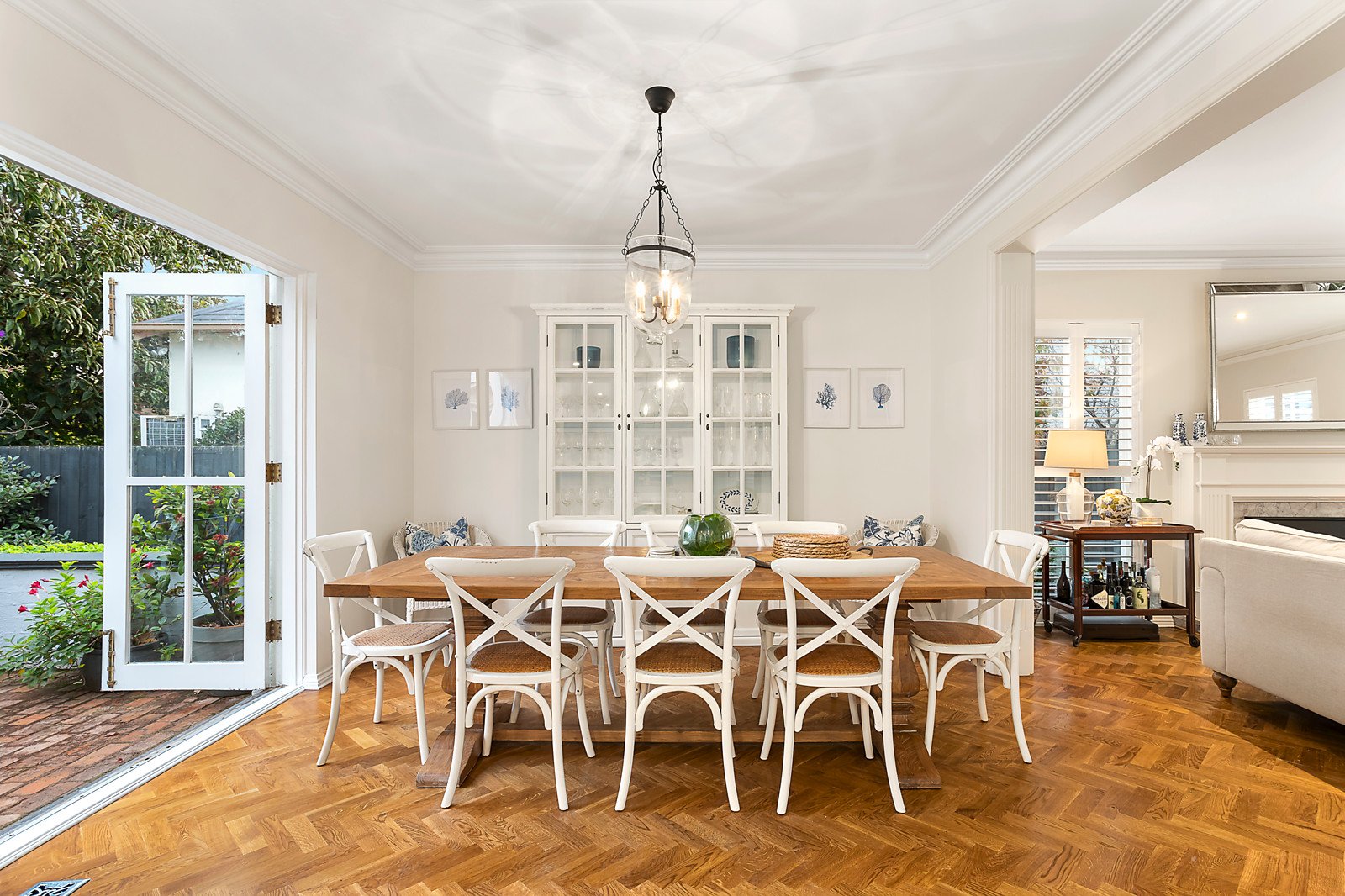 The impressive scale is immediately apparent in the welcoming reception hall, captivating living room with a gas log fire and an adjacent formal dining space all featuring oak parquetry floors. The sublime gourmet kitchen appointed with stone benches, Liebherr integrated fridge/freezer, Zip Hydro tap, European appliances and a butler's pantry is adjacent to a generous family living and dining room with gas fire. Living spills out to a deep private garden with large entertaining terrace. A spacious study or 5th bedroom and stylish third bathroom are downstairs with internal access to a double garage and well appointed laundry. Light filled family accommodation upstairs comprises of a beautiful main bedroom with en-suite and walk in robe, three double bedrooms with built in robes and a family bathroom.