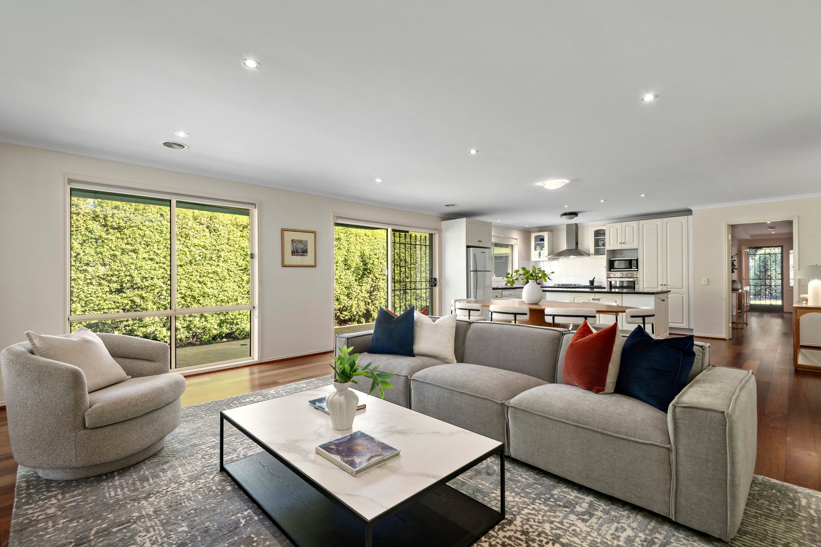 Peacefully situated in a sought-after treelined street, and just a short walk from the Kew East Primary School and the village-like charms of Harp Road, ‘Green Gables’ is a lovingly maintained and sweeping single-level family residence offering four bedrooms, two bathrooms, multiple living zones, a study and lavish poolside entertaining. Attractively presented for today and set on a 697sqm(approx.) allotment with undeniable future potential, this is a home for today, tomorrow and beyond, within easy reach of Melbourne’s revered private school belt.