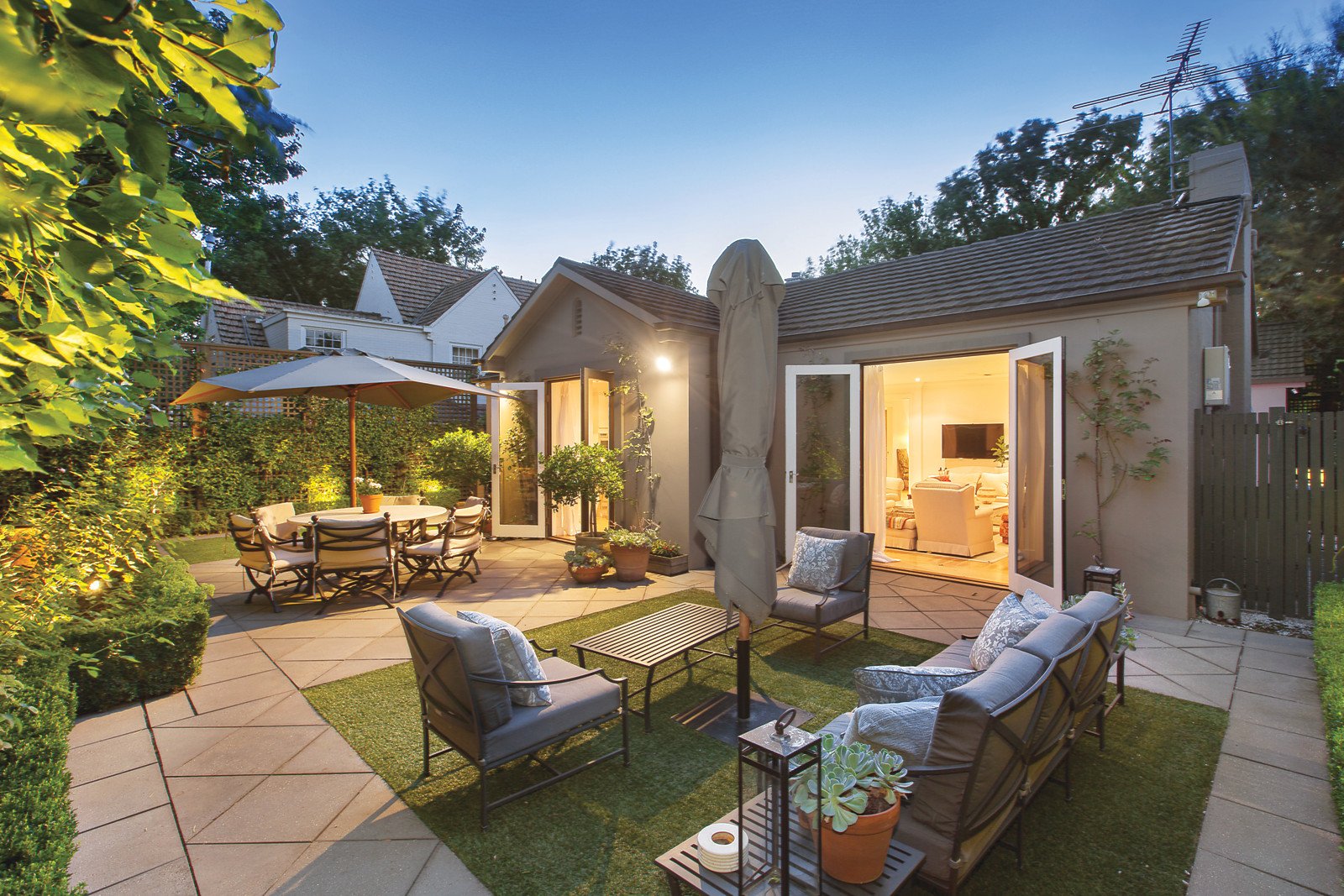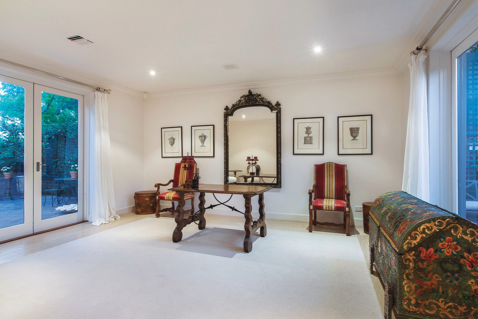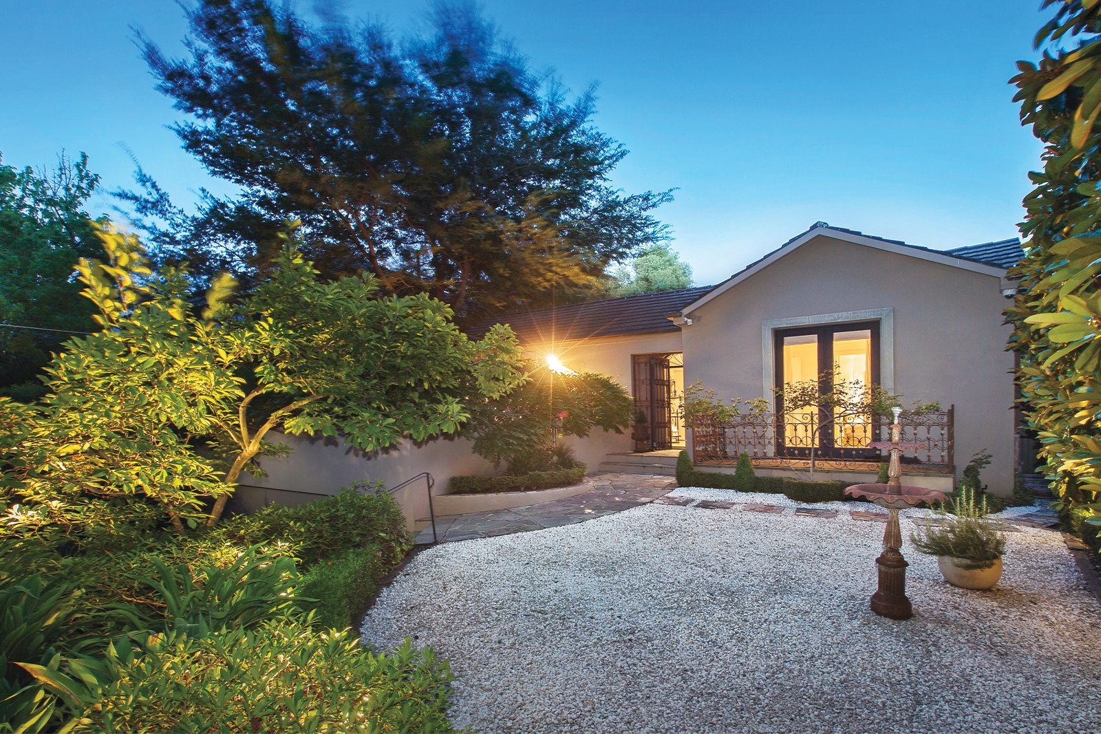 Exuding timeless elegance, the extra wide gallery hall introduces a glorious sitting room or 3rd bedroom opening to a sensational tranquil western sun-terrace, the beautiful main bedroom with marble en-suite and walk in robe, second double bedroom and marble bathroom. The exceptionally generous living and dining room with an open fireplace and well appointed stainless steel kitchen opens to a central north-facing courtyard with heated pool and the private east-facing garden surrounded by a hedge of Manchurian Pears.