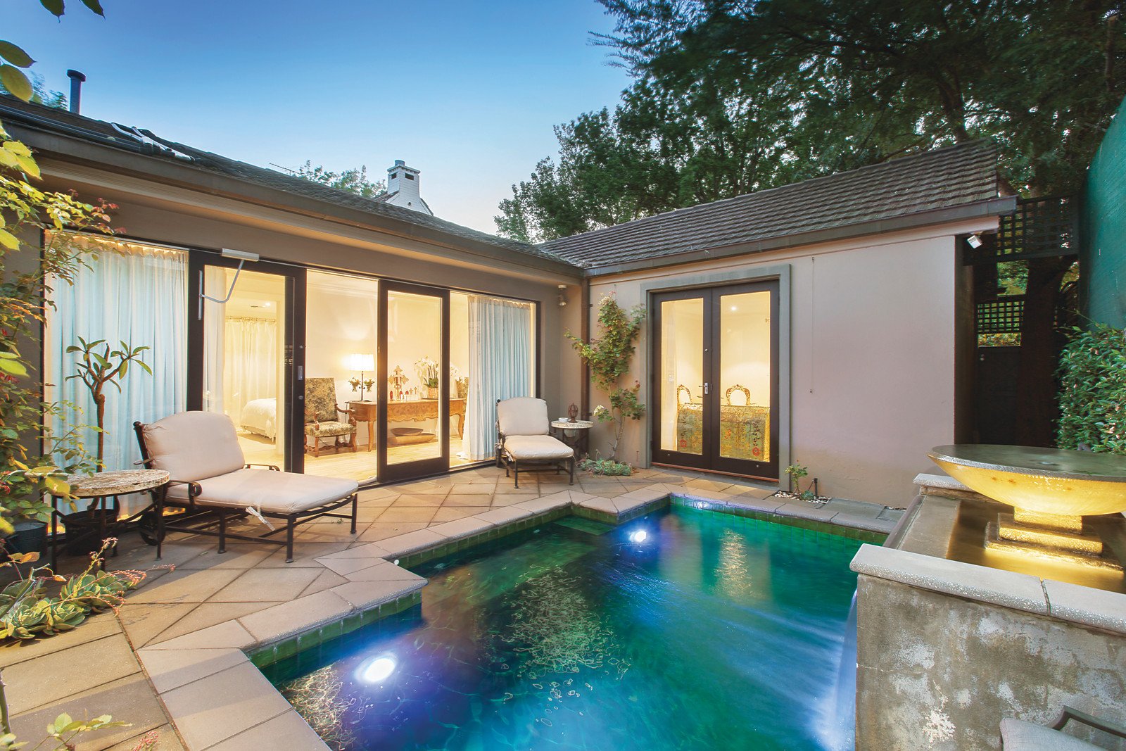 Set on 604sqm (approx.) and superbly designed around a series of stunning private landscaped courtyards and a pool, this captivating single level residence, previously renovated by Wayne Gillespie, is enviably situated in an exclusive leafy cul de sac walking distance to Beatty Ave, Toorak station, Hawksburn Village, Orrong Park and schools.
