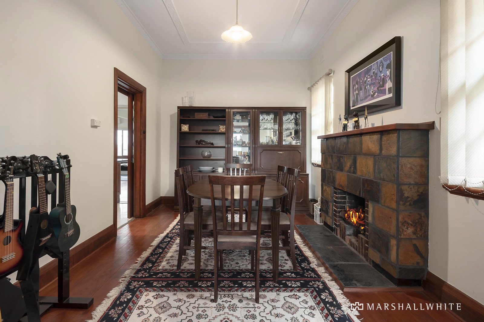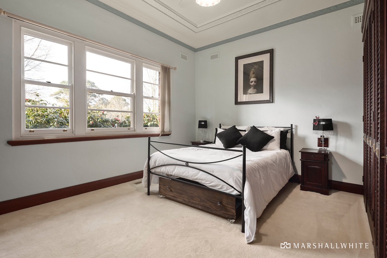 Original features including Deco ceilings and timber floors characterise the wide entrance hall, gracious sitting room and formal dining room both with an open fire. The expansive living and dining room served by a sky-lit granite kitchen opens to the private leafy garden. The captivating main bedroom with built in robes is matched by two additional bedrooms, a pristine bathroom and second bathroom/laundry with separate powder-room.