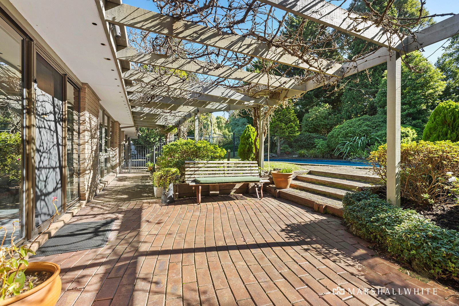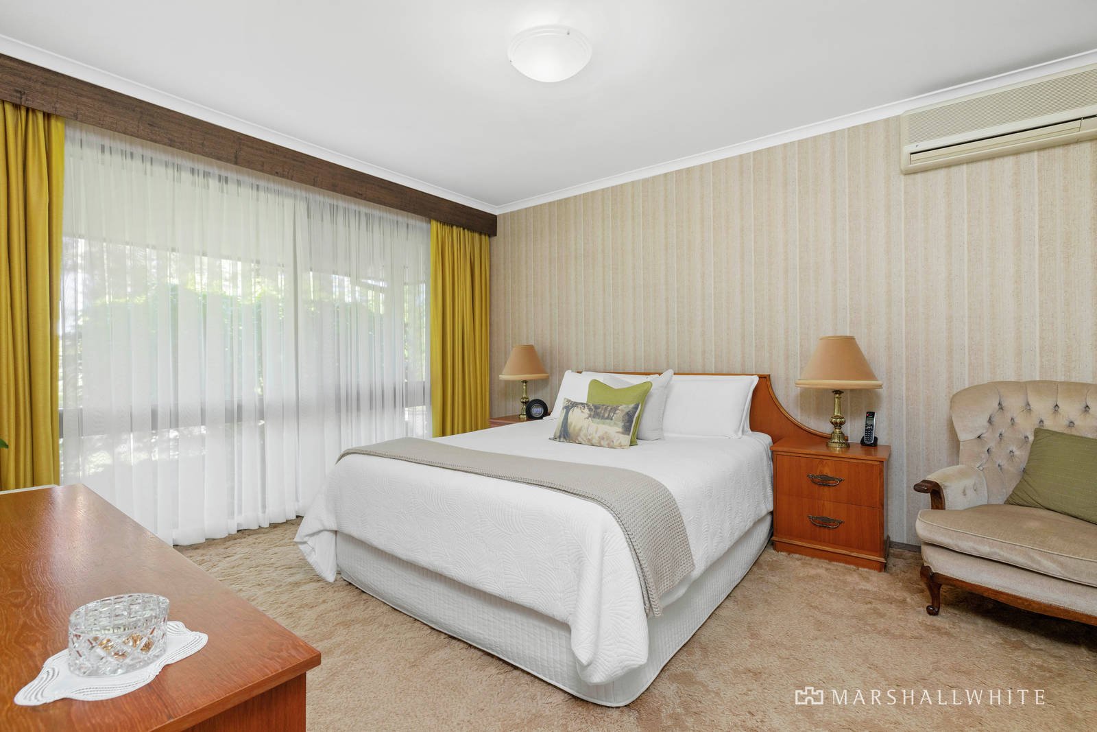 On the market for the first time in more than four decades, the 1970s architect-designed single-level solid brick home's intuitive layout and quality appointments have graciously stood the test of time. Opening into an entry foyer, a central hallway leads to five good-sized bedrooms all with built-in robes, while the spacious master suite, with floor-to-ceiling windows and glorious front garden outlooks, has a walk-in robe and an ensuite with shower. The main bathroom features charming original tiling, a built-in tub, and shower. The home's back door opens to a mud-room space with plenty of storage cupboards, and a full-size laundry/utility room. There are both formal and informal living and dining areas, with the casual open-plan family zone facing the delightful pool and rear gardens. The central gourmet kitchen is fitted with a Miele double oven and ceramic cooktop, and an Asko dishwasher.