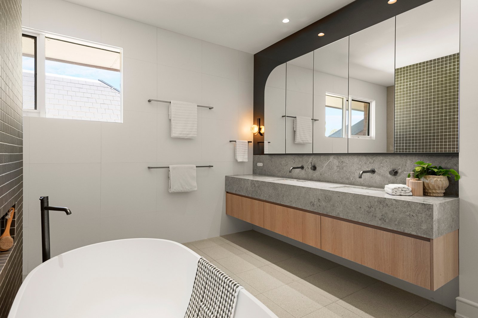 The palatial primary bedroom suite is a true sanctuary, with extensive walk in robes, a stunning undercover balcony with elevated vistas and city glimpses, and a refined ensuite with freestanding bath, dual vanity and double shower. Four further bedrooms include two generous ensuite bedrooms opening to an enclosed wintergarden balcony, and two bedrooms that feature dual ensuite access to a stylish bathroom, equally suited as a private guest suite with lounge.