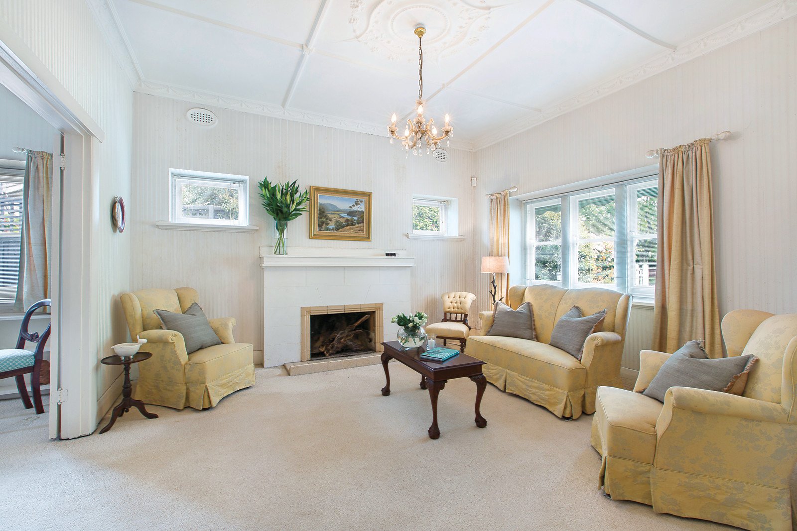 Framed by a sweeping arched verandah, the welcoming entrance hall and beautiful formal sitting and dining rooms feature glorious ornate ceilings. A pristine original kitchen and sun-drenched living room open to the private established garden. Two generously proportioned bedrooms with built in robes are complemented by a third bedroom, study and fully tiled bathroom.