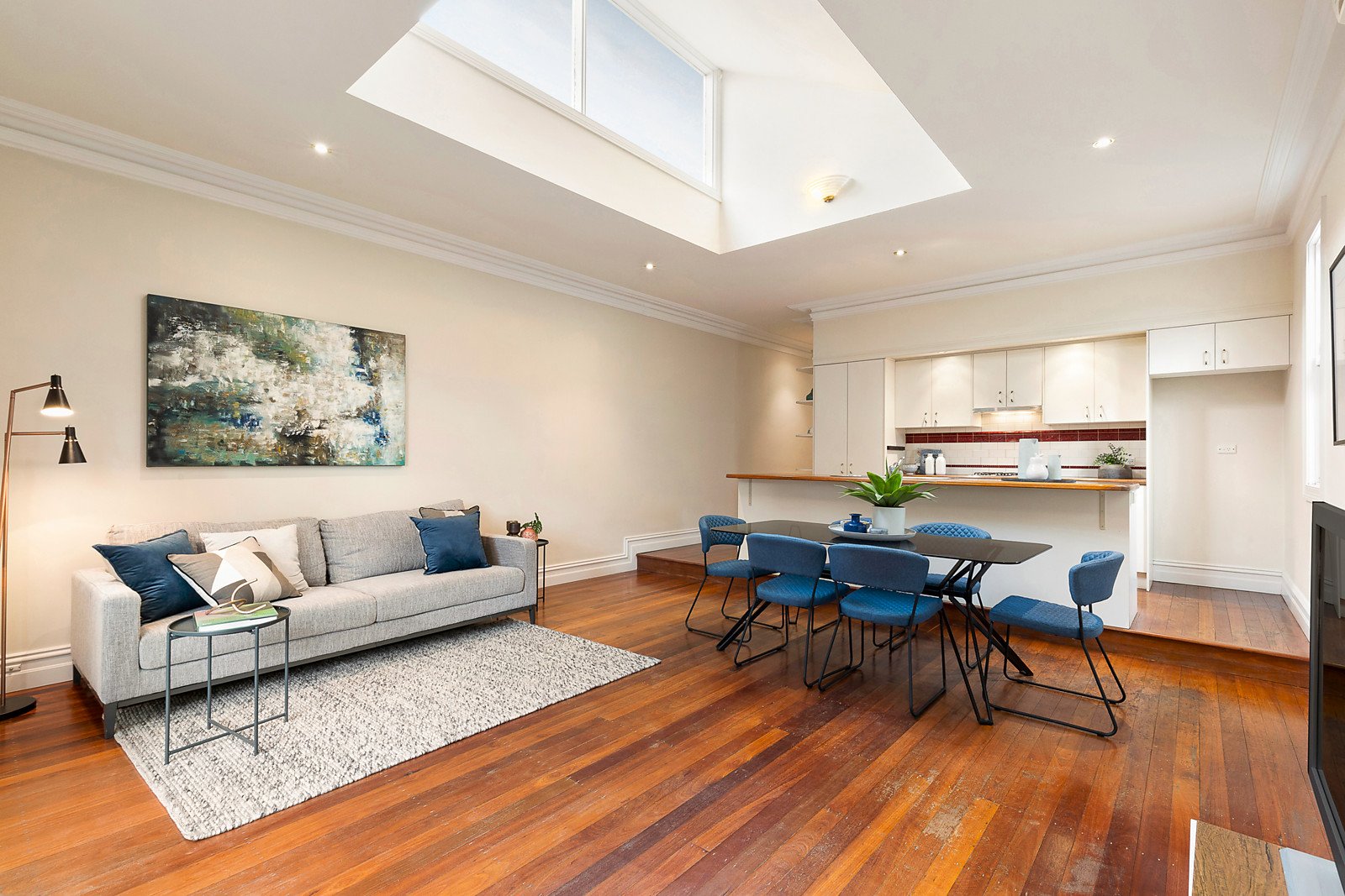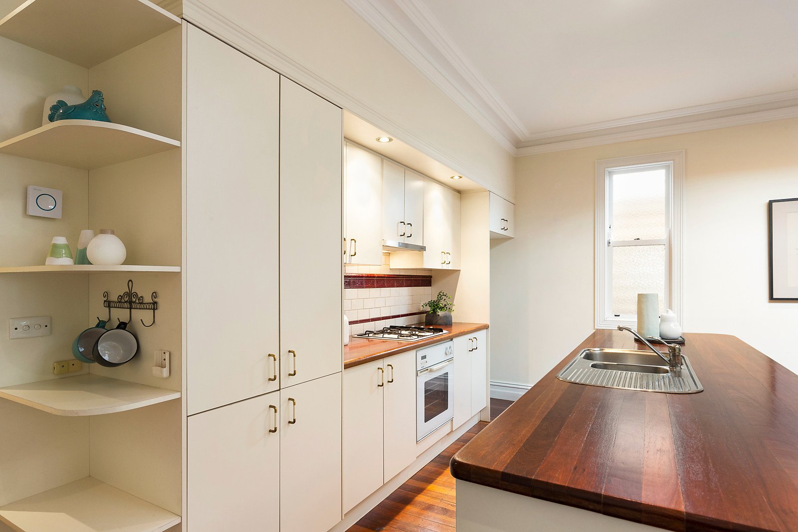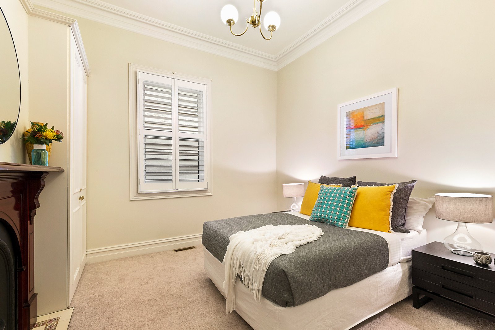 Behind the block-fronted façade, an arched hallway featuring high ceilings leads to two gorgeous double bedrooms with open fires and built in robes, a third spacious bedroom and a bright bathroom. A vaulted sky-lit ceiling accentuates the sense of space in the generous open plan living and dining room featuring timber floors and a well appointed kitchen. The living area opens to a covered deck overlooking the west-facing private garden. Appointed with plantation shutters and a laundry, it offers both present day and future appeal.