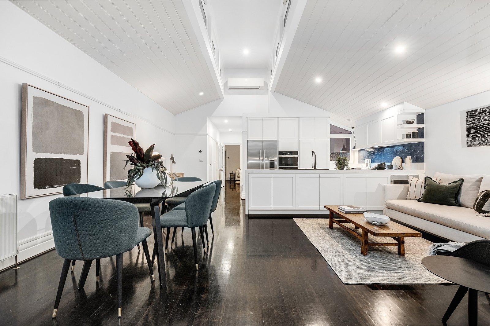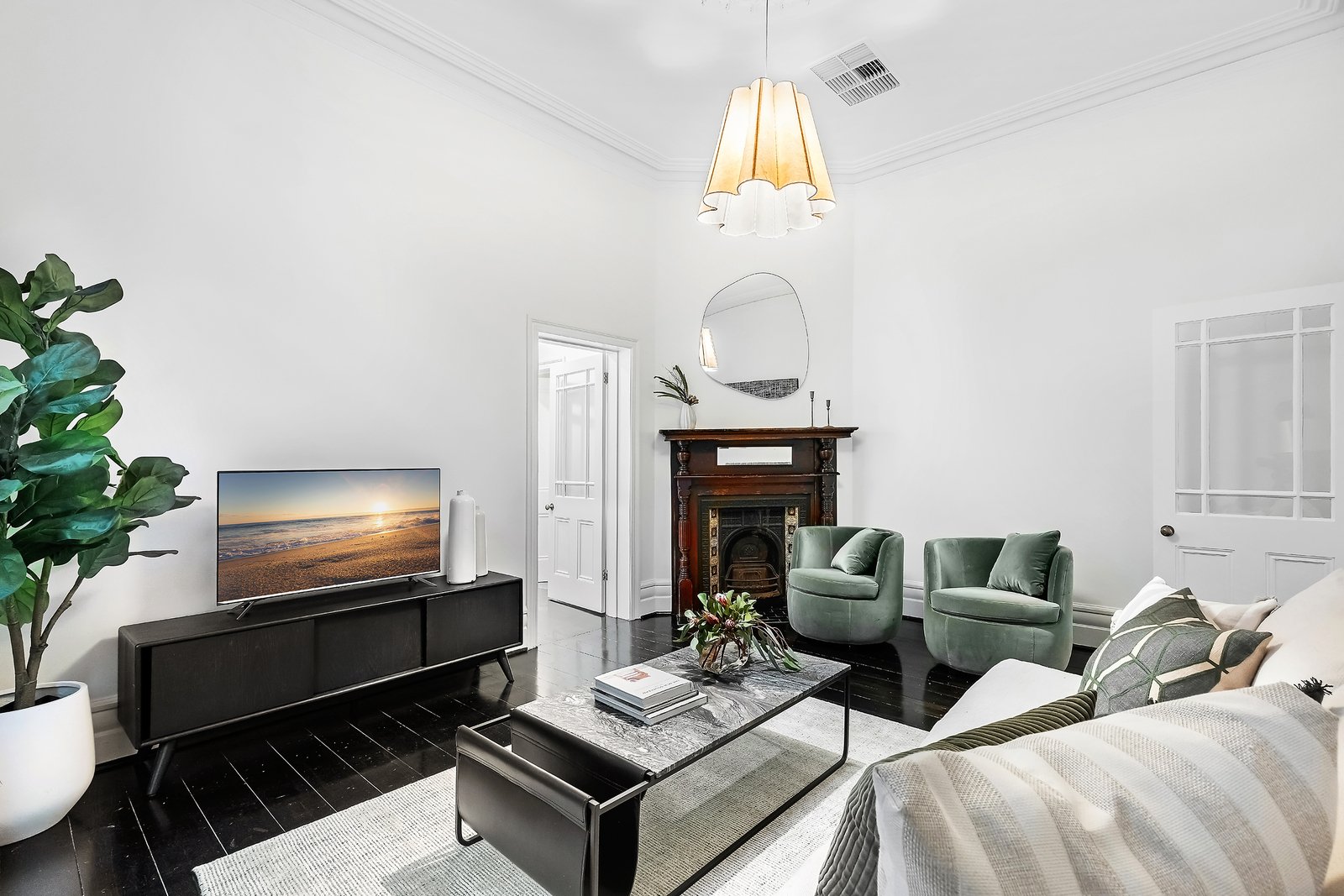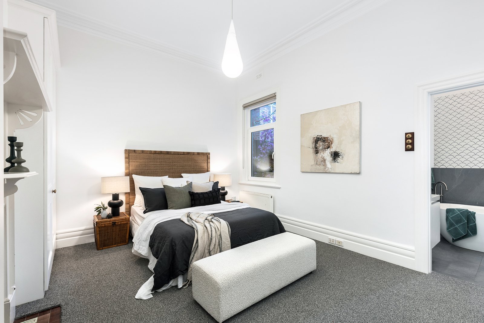 Situated on an expansive 337sqm (approx) allotment (6.77m x 50.29m approx) just 350m from the beach, this thoughtfully renovated, extra wide single-level Edwardian residence redefines contemporary elegance, offering unparalleled privacy, style, and family serenity. Located on a quiet, tree-lined street just one block from Armstrong Street Village, with easy access to trams and proximity to Albert Park Lake, this residence offers a tranquil living experience, with four bedrooms, two spacious living areas and secure garage parking via ROW.