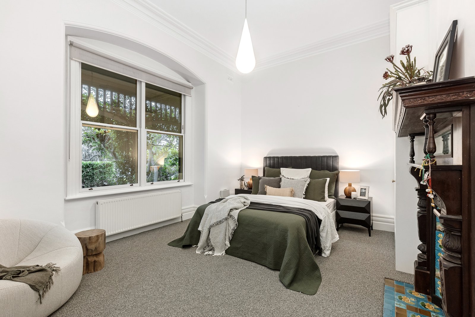 Traditional high ceilings and richly toned hardwood floors are superbly combined in the broad entrance hall, which flows past the main bedroom with a private en-suite, three additional robed bedrooms and a stylish central bathroom. A light-filled and elegant lounge room with a magnificent open fireplace precedes the open-plan family domain, where raised box ceilings with clerestory windows allow the sun to flood inside.