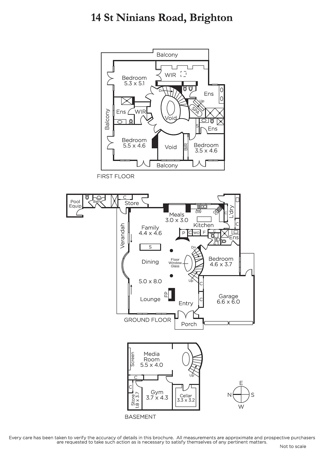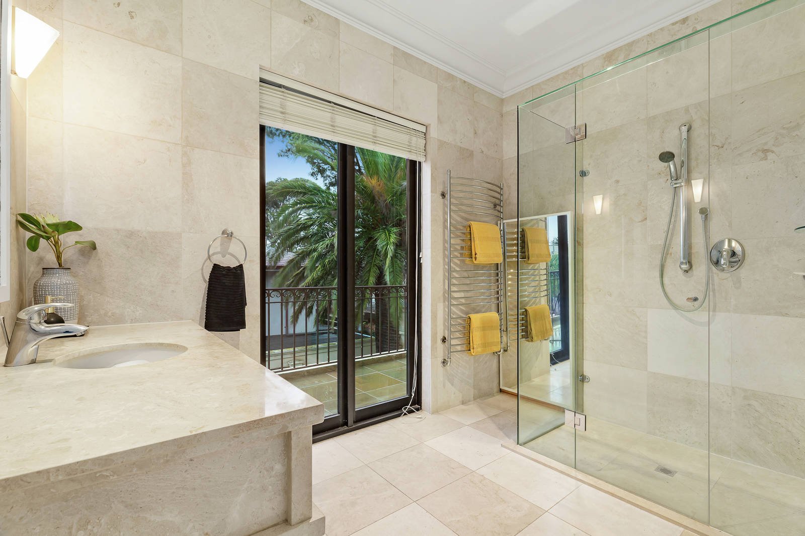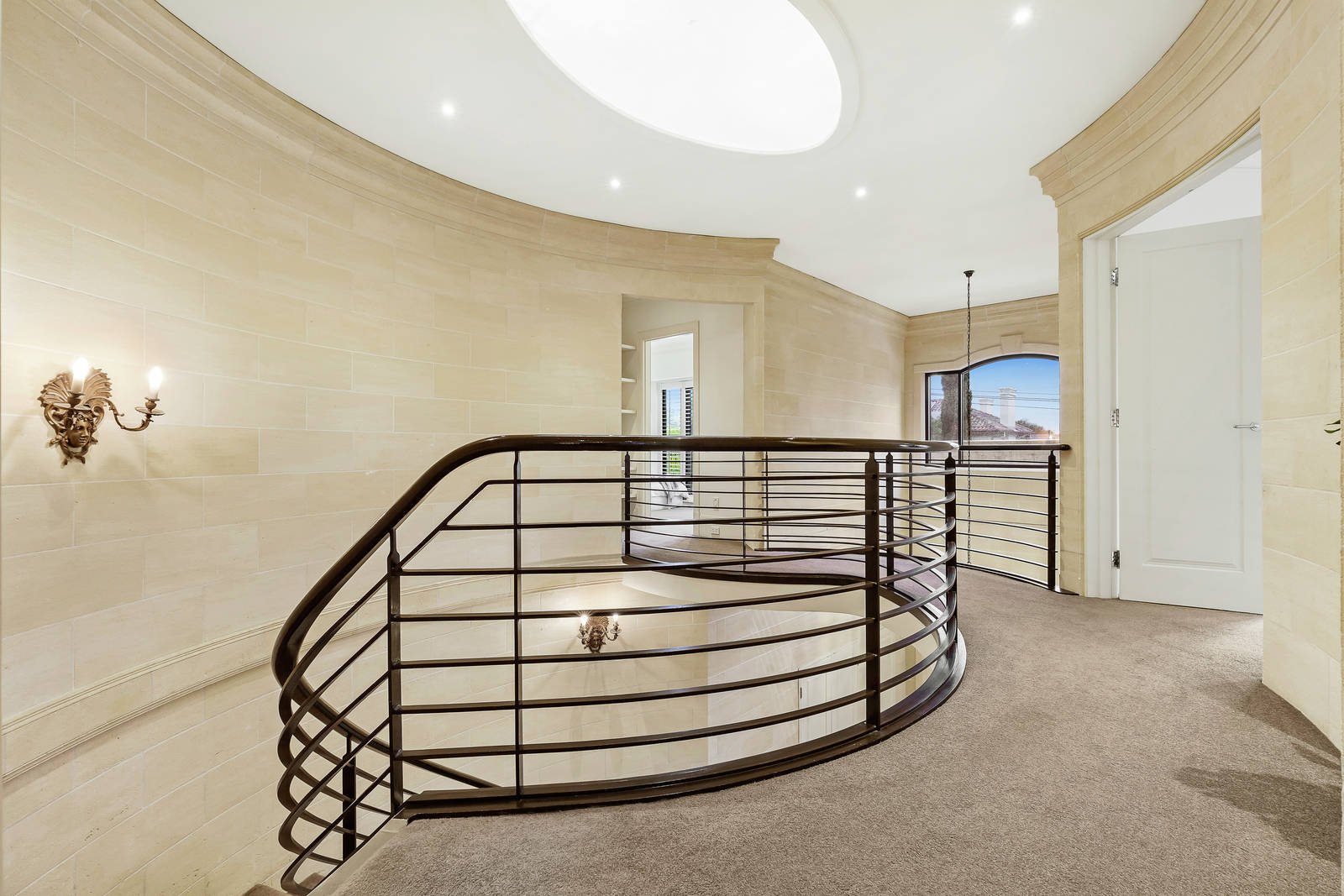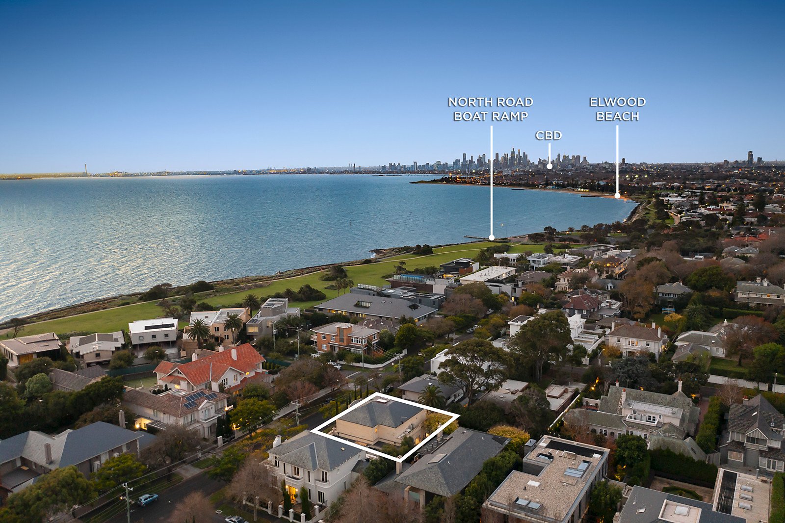 Come home to an exclusive Golden Mile address and magnificent three-level home, metres from the beach and minutes to prestige schools. The four-bedroom five-bathroom design is outstanding, expertly planned to the highest standard to showcase architectural innovation. This impresses from the moment you arrive and see the soaring double-height entry foyer, sprawling living and dining zones, grand staircase, glass floor, and curved sandstone walls. The custom-crafted splendor is world-class, from the marble-surround pool and spa to the 1,500-bottle basement cellar planned for easy cataloguing of your finest vintages. One of Brighton's biggest dressing rooms and ensuites is part of the parents' retreat, featuring plenty of display space for handbags and shoes, a huge amount of storage, and a marble bathroom with a double shower and oversized spa bath. Keep fit using the well-appointed gym, heated pool and steam room, watch sport on your own big screen in the surround-sound basement cinema, and relax outdoors in the easy-care north-facing garden with a barbecue kitchen, fire pit, and honed bluestone pavers. High-end fitout is at the heart of the marble kitchen and butler's pantry, with a French induction cooktop and steam oven, Bosch convection oven, and stainless steel and stone benchtops. There's so much to admire, including an ensuite for every bedroom, a first-floor wraparound balcony with access from bedrooms, bay and city glimpses, and bespoke timber floors. Easy walk to beachfront cafes, Bay Street's shops and train station, and minutes to Church Street, Firbank and Brighton Grammar Schools.