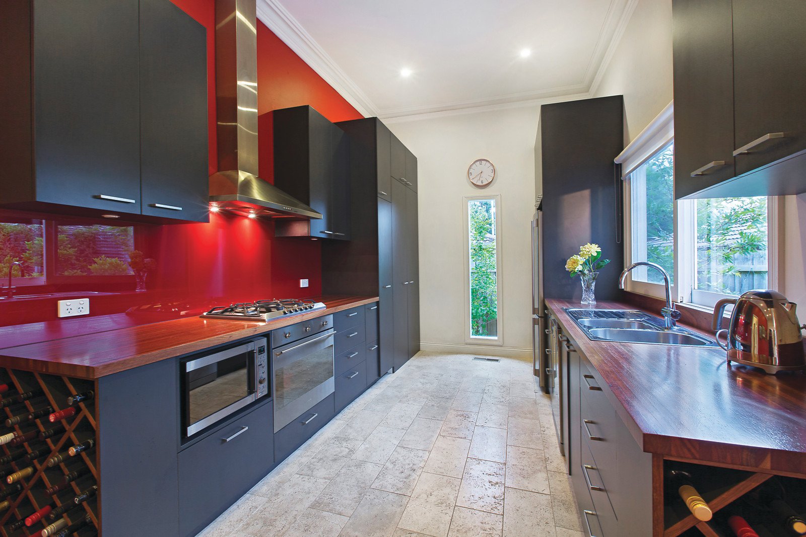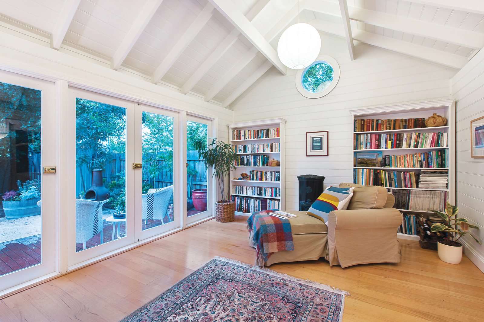 Nestled behind a high corner hedge and verandah, the central arched hallway introduces a gracious sitting room with open fireplace, the beautiful main bedroom with open fire, built in robe and designer en-suite, a second bedroom with open fire, third bedroom and stylish bathroom. Timber floors flow through the generous dining area and sleek modern kitchen boasting Smeg and Miele appliances. Soaring vaulted ceilings add enormous charm to the spacious living room and separate retreat or home office opening to the private landscaped garden with morning and afternoon decks and potential off street parking from Edgar Street.