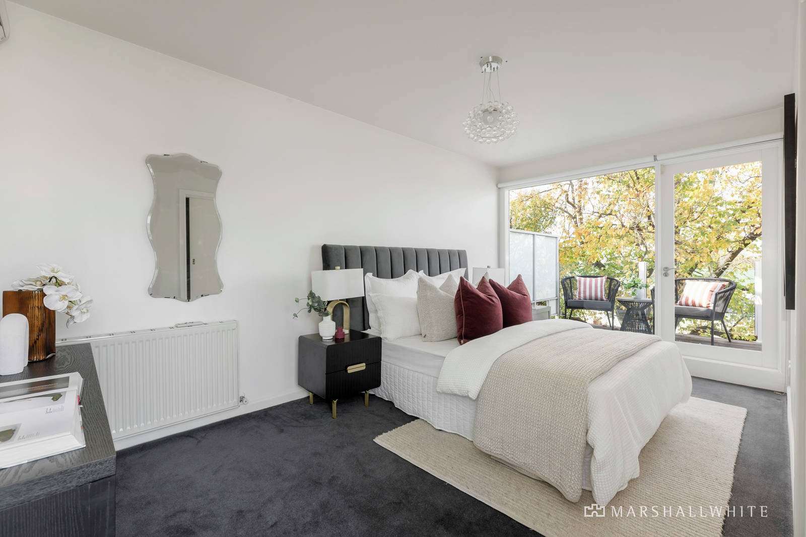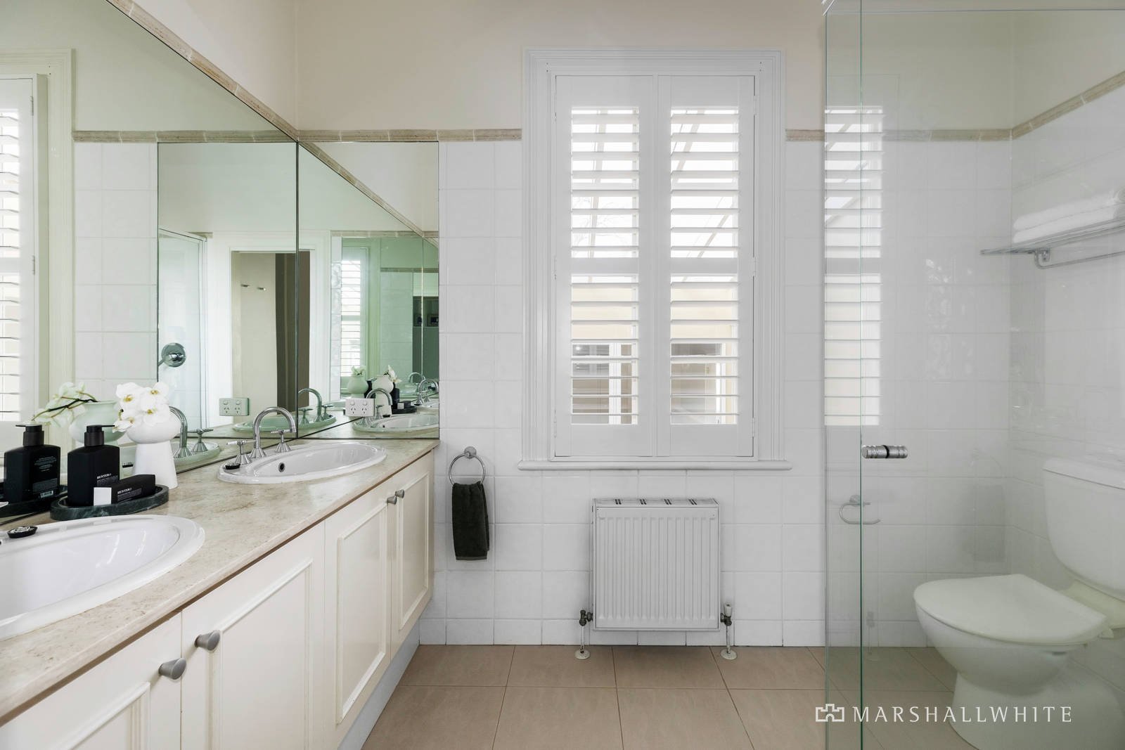 The majestic arched hall featuring high ceilings and Baltic pine floors introduces a gracious sitting room with fireplace and a formal dining room. Streaming with natural light, the gourmet kitchen appointed with stone benches and premium Bosch appliances and the generous living and dining room open to a wide balcony enjoying a wonderful outlook to surrounding greenery. Upstairs, the glorious main bedroom with marble fireplace, walk in robe and lavish en suite is matched by a second double bedroom with robe, third bedroom with walk in robe and broad balcony, a shower room and powder-room. The versatile lower level comprises a spacious home office or guest bedroom with gas fire, stylish third bathroom, a spectacular atrium with water feature beneath a triple height glass ceiling and an expansive retreat/media or living room opening to the private northeast facing paved garden. Surrounded by lush greenery, it is an idyllic setting for outdoor dining and entertaining. The lower level also offers flexibility as self-contained accommodation if required. Beyond the garden there is a double garage accessed via a wide right of way.