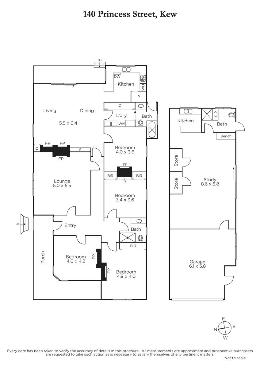 Set well back from the street, the wide return verandah introduces a welcoming L-shaped entrance hall and gracious sitting room featuring magnificent, pressed metal ceilings and an open fire. Three double bedrooms with fireplaces are accompanied by a 4th bedroom and two bathrooms. The expansive open plan living and dining room with roaring open fire served by a well-appointed timber kitchen opens to a verandah and the deep private leafy garden with a self-contained studio apartment or rumpus room with kitchenette and bathroom.