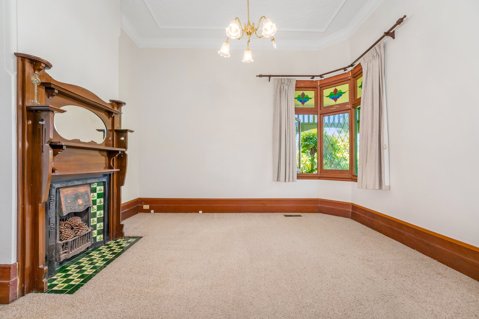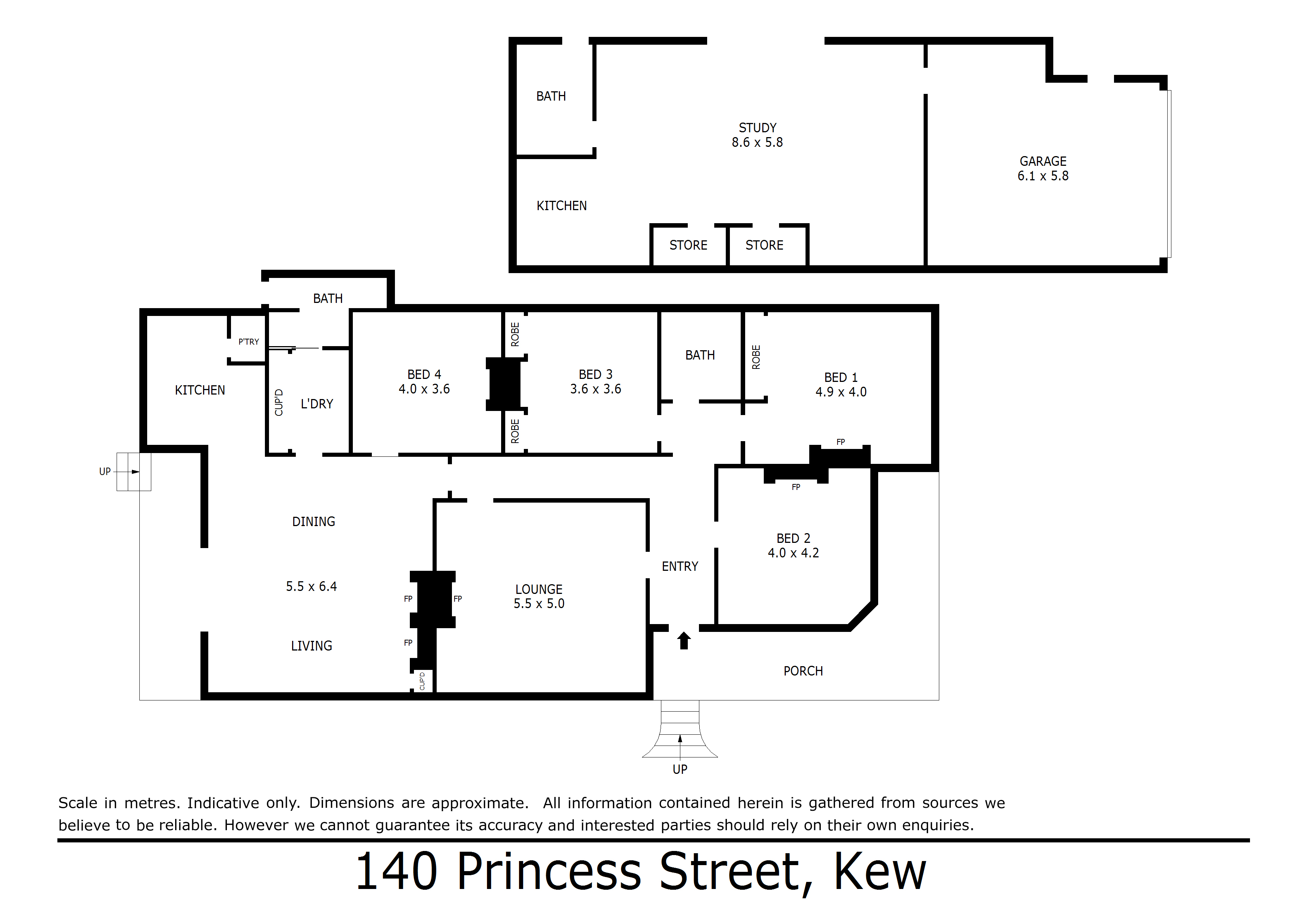 Set well back from the street, the wide return verandah introduces a welcoming L-shaped entrance hall and gracious sitting room featuring magnificent, pressed metal ceilings and an open fire (cosmetic only). Three double bedrooms with fireplaces (cosmetic only) are accompanied by a 4th bedroom and two bathrooms. The expansive open plan living and dining room with roaring open fire served by a well-appointed timber kitchen opens to a verandah and the deep private leafy garden with a self-contained studio apartment or rumpus room with kitchenette and bathroom.