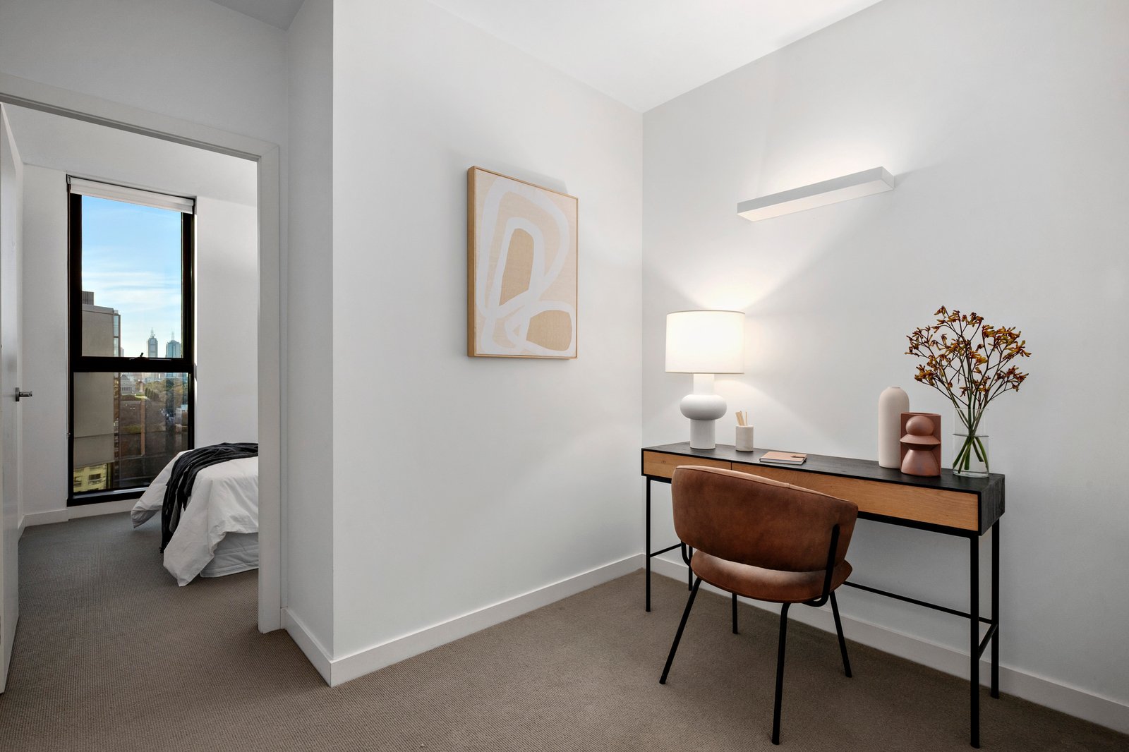 Intelligently conceived interiors balance space, light, views and effortless connection to a sunny terrace, as open-plan dining / living fills with northern light and reveals a streamlined kitchen with stainless steel appliances, plus a brilliant separate study nook. Fully secure with video entry, a fob-activated elevator and the added prize of non-stacker basement parking, the apartment also offers access to a communal gymnasium, as well as a primary bedroom ensuite, built-in robes in each of the bedrooms and a concealed laundry, all climatically controlled by split system heating / air conditioning.