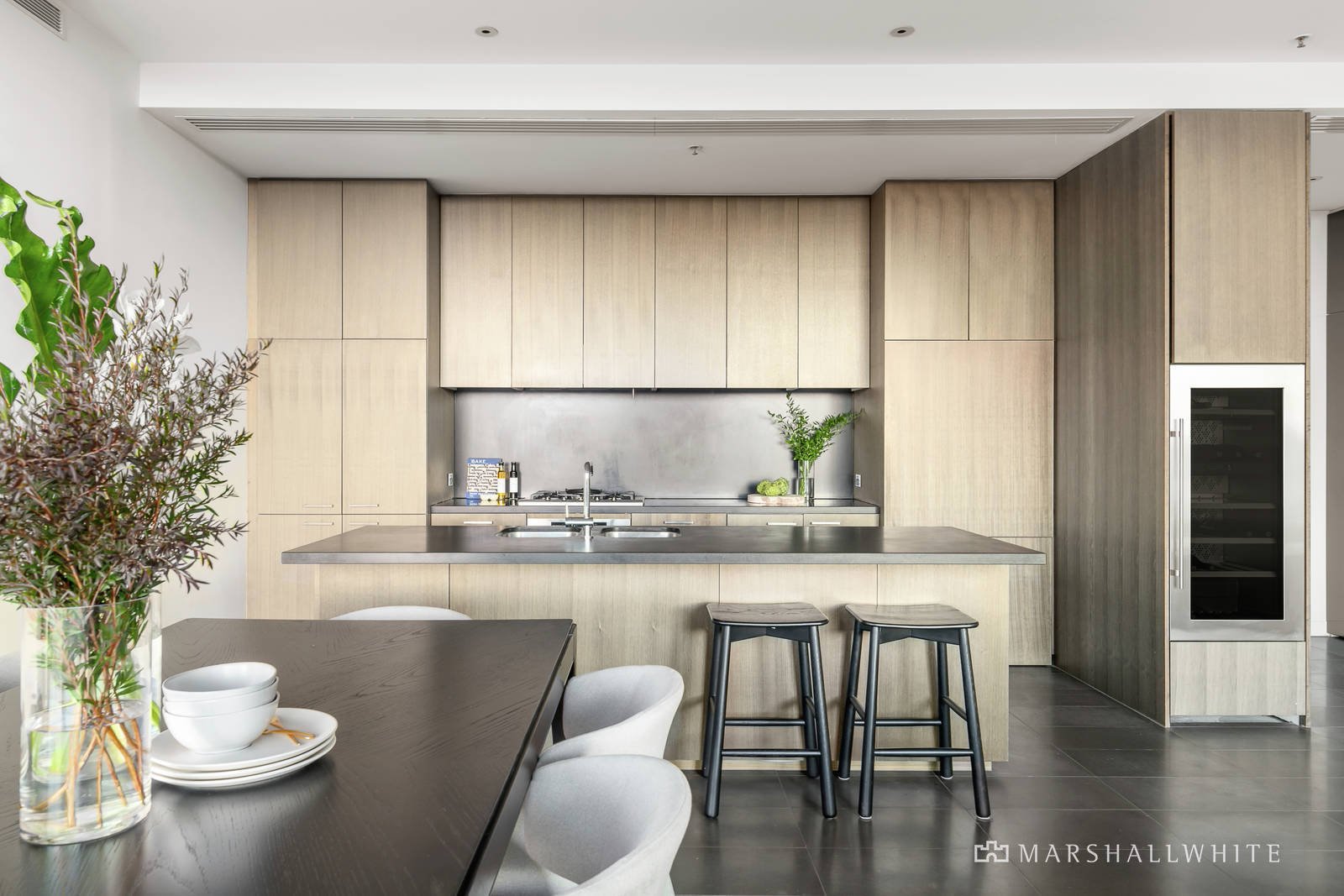 Featuring loads of living space plus a northern balcony - perfect for indoor entertaining or alfresco dining. The stylish interior is highlighted by floor-to-ceiling glazing flooding the interior with abundant natural light throughout. Featuring an expansive living and dining room incorporating a state-of-the art kitchen equipped with stone bench-tops, prestige Miele appliances, F & P integrated refrigerator, Liebherr wine fridge, three generous double bedrooms, two sleek fully tiled bathrooms and a large laundry.