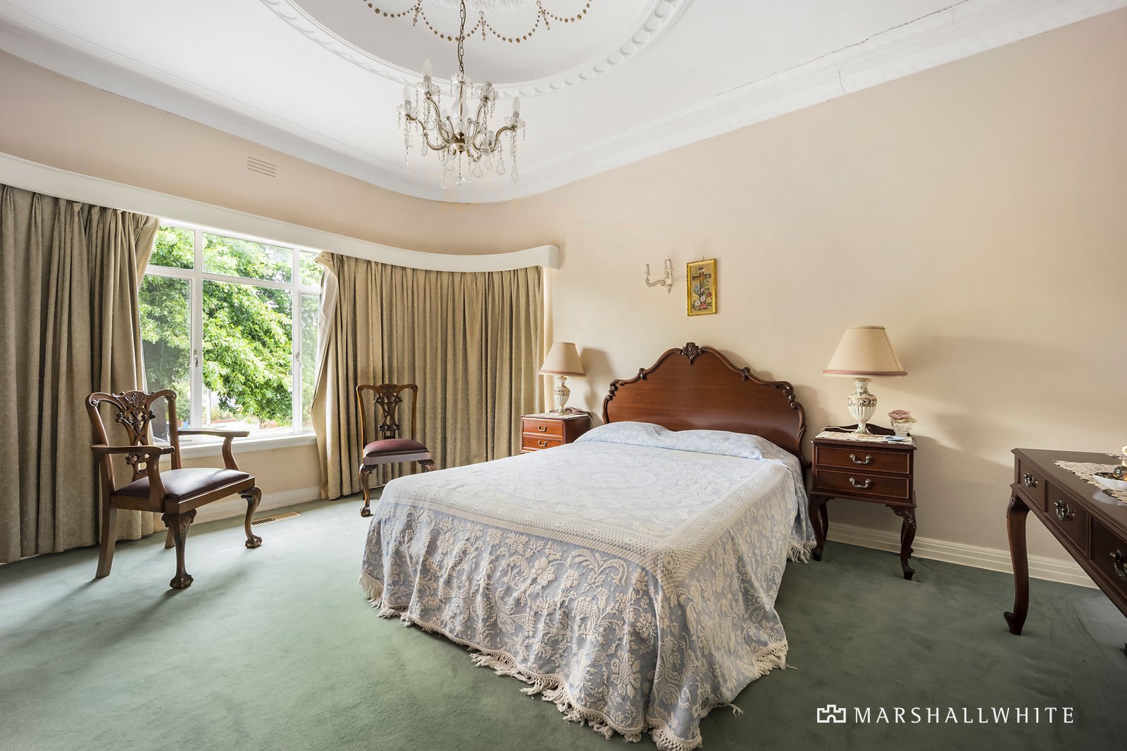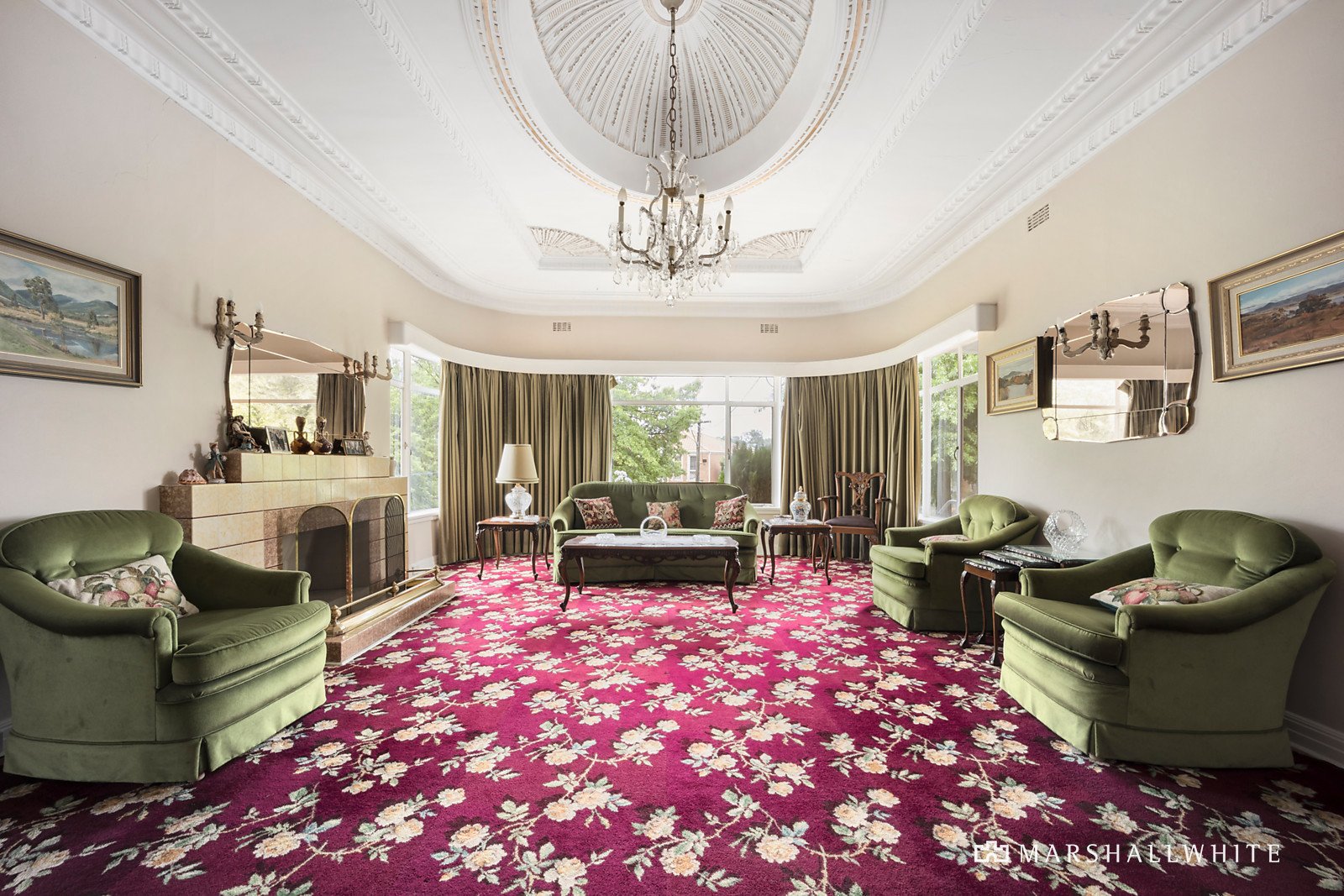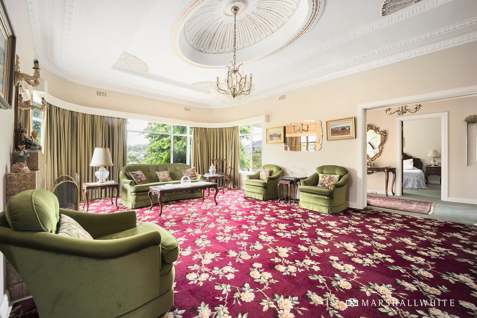 Presiding over the street from its elevated position, captivating features including ornate ceilings and curved metal framed windows are highlighted throughout. Exquisite domed ceilings preside over the palatial sitting room with a tiled fireplace and the glorious formal dining room. A cosy retreat and the spacious original kitchen with fabulous built in booth-style dining table and seating overlook the private north-facing garden with double garage accessed from Barnard Grove. The main bedroom, also boasting a domed ceiling, is accompanied by two additional double bedrooms and a pristine bathroom with separate toilet.