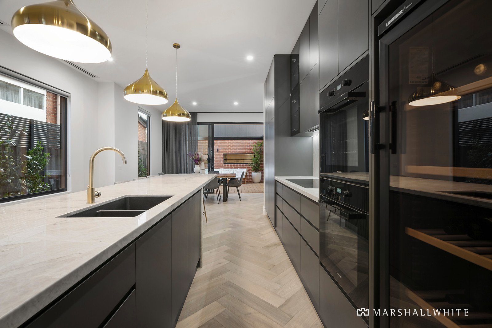 Detail is paramount, with a visionary transformation unfolding beyond its restored, tuck-pointed facade to reveal unfathomable space highlighted by a unique connection to its outdoor environment. Multiple living areas are superbly zoned for various uses, with the front sitting room basking in northern outlooks and hosting an ensuite, ideal as a fourth bedroom. Taj Mahal Quartzite is the hero feature of the 13.7m (approx.) long entertainer's domain, sitting centrally within the gourmet kitchen incorporating a suite of Miele appliances, integrated Liebherr wine fridge and integrated fridge/freezer. Sophisticated living and dedicated dining zones are accented by high ceilings, designed to flow to a sun-drenched decked courtyard presenting endless entertaining possibilities.