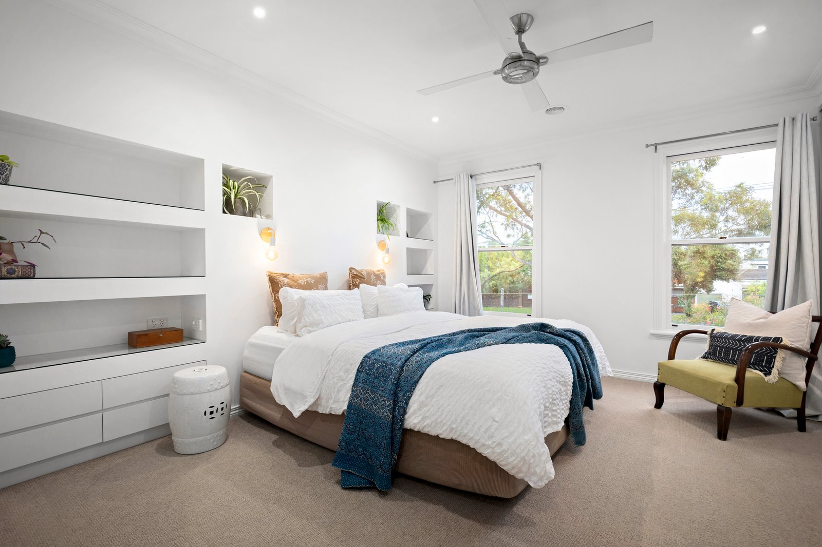 Retreat upstairs to a spacious and meticulously appointed main bedroom featuring a walk-in robe and ensuite, alongside two generously sized bedrooms boasting built-in robes and a luxurious family bathroom with sweeping city views from the freestanding tub. Added comforts include split-system heating and cooling for climate control, a convenient European laundry, and a garden studio/retreat adorned with polished concrete floors, providing the flexibility to revert to a garage if needed.