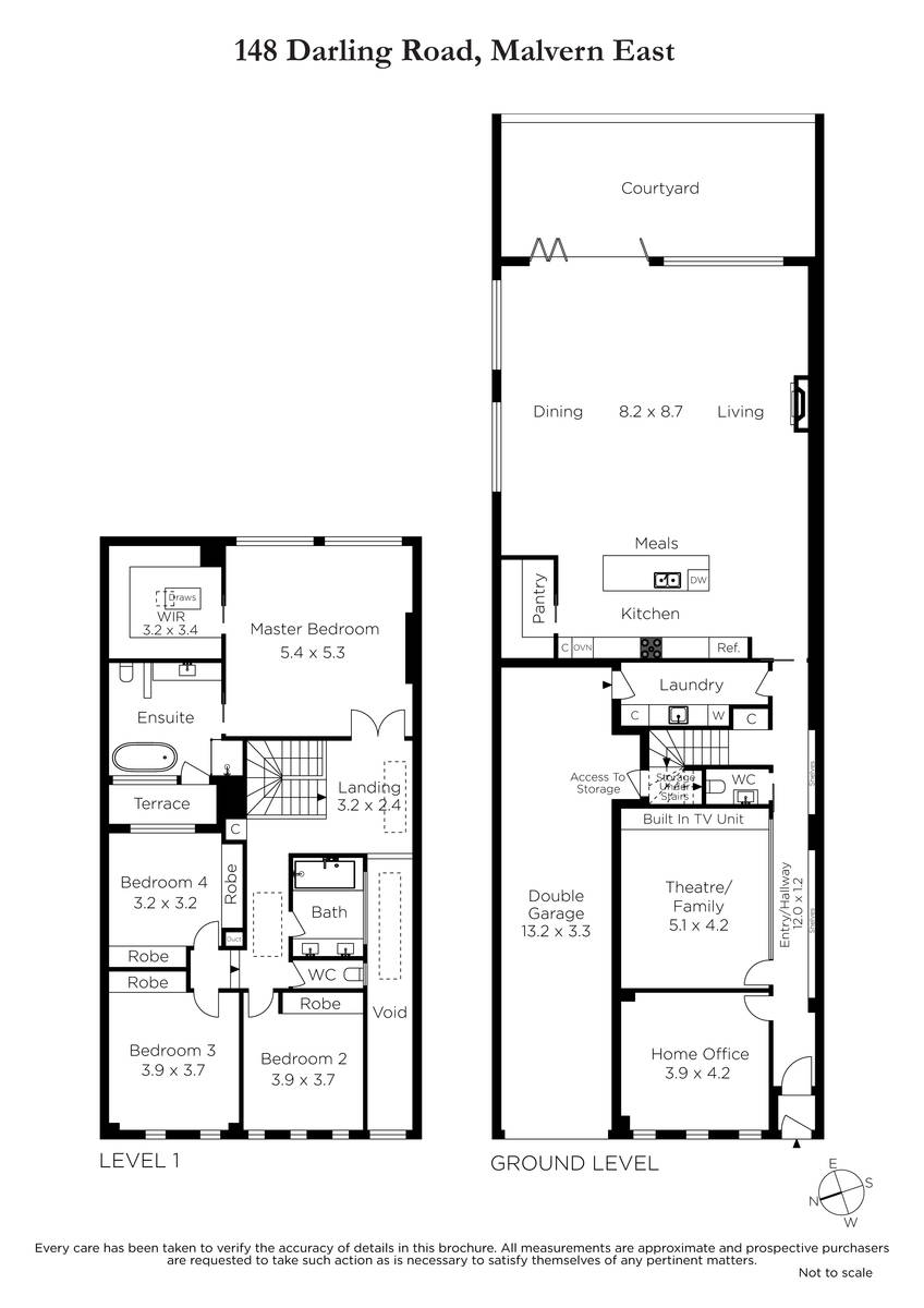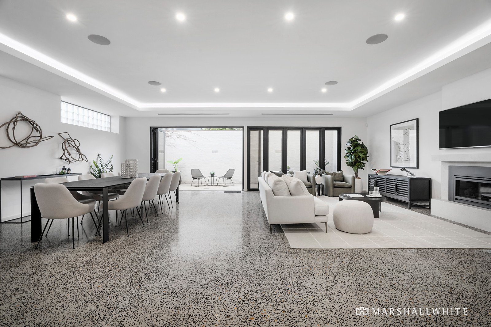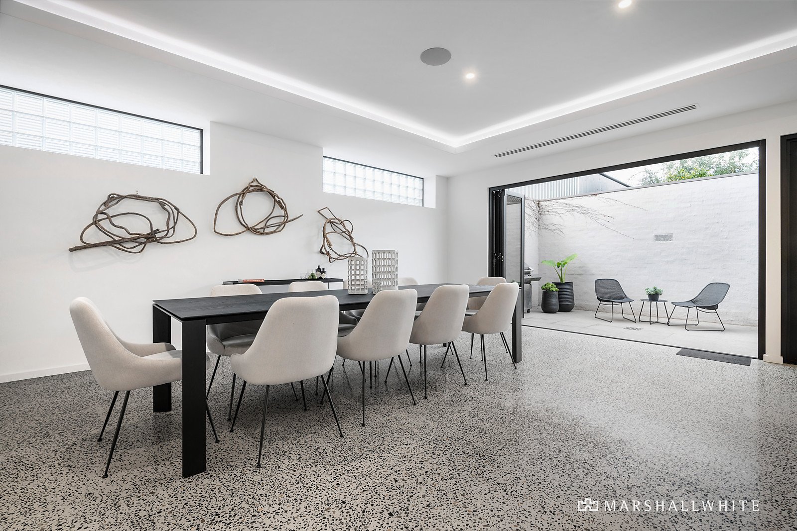 With versatility front of mind, high end finishes and soaring proportions elevate a flexible layout catered to modern family enjoyment, and possible home business options. Two generous living domains offer a theatre or family room with in built storage, plus a capacious open plan living and dining zone featuring a gas fireplace, welcoming endless northerly light and indoor/outdoor entertaining between a private courtyard through bi-fold doors. A luxurious marble island kitchen centers the space, featuring deluxe Miele appliances and a walk in pantry with cleverly integrated storage. Multiple layouts are possible over two levels, with a spacious home office (opportunity for home business) on ground floor and four robed bedrooms on the first floor as a favourable set up, primary suite featuring its own dressing room and lavish stone ensuite with freestanding spa bath and lightwell access. Additional features include spacious laundry, secure entry, video intercom, alarm, storage, powder room, modern central bathroom and garage parking for two.