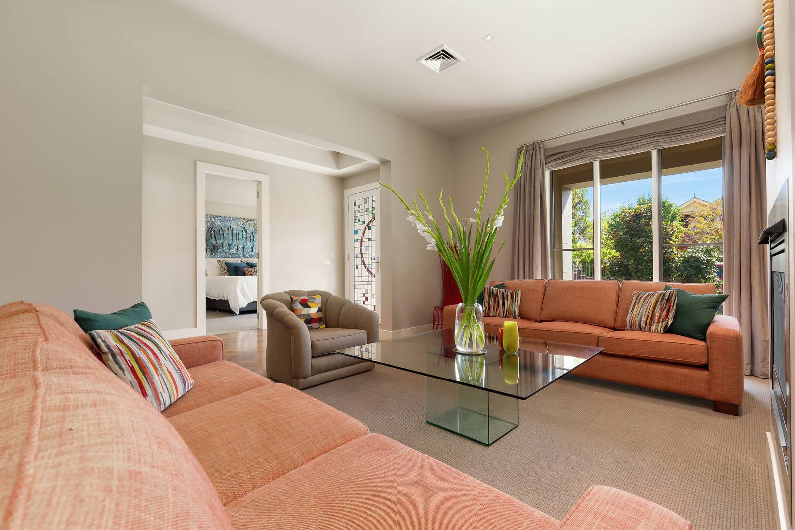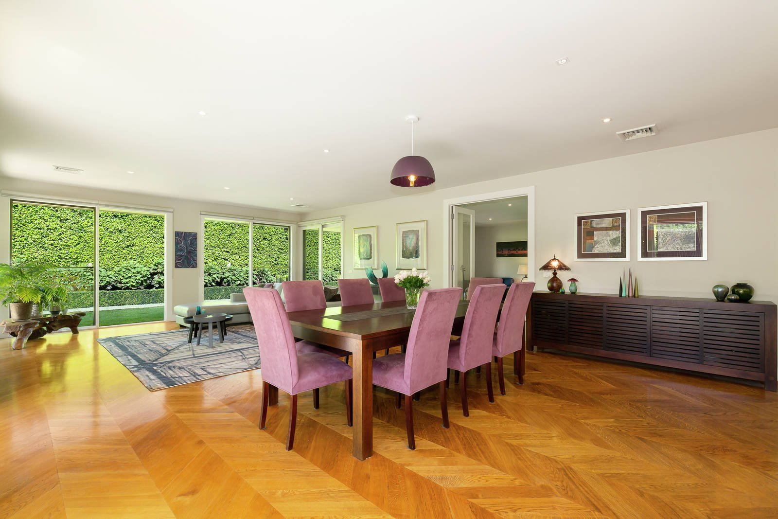 Set in beautifully landscaped gardens lined with hedges, ornamental trees and mass plantings of Hydrangeas and Camellias. This exceptional single-level contemporary residence is introduced by an eye-catching rendered and Daniel Robertson half brick façade with a beautiful, stained glass front door custom made by Wesley Vine Glass Craftsman. The interior delivers wonderfully spacious family living areas and claims the perfect credentials for meeting contemporary lifestyle and entertaining expectations. Meticulously maintained by the current owners the presentation will impress the most fastidious buyers.