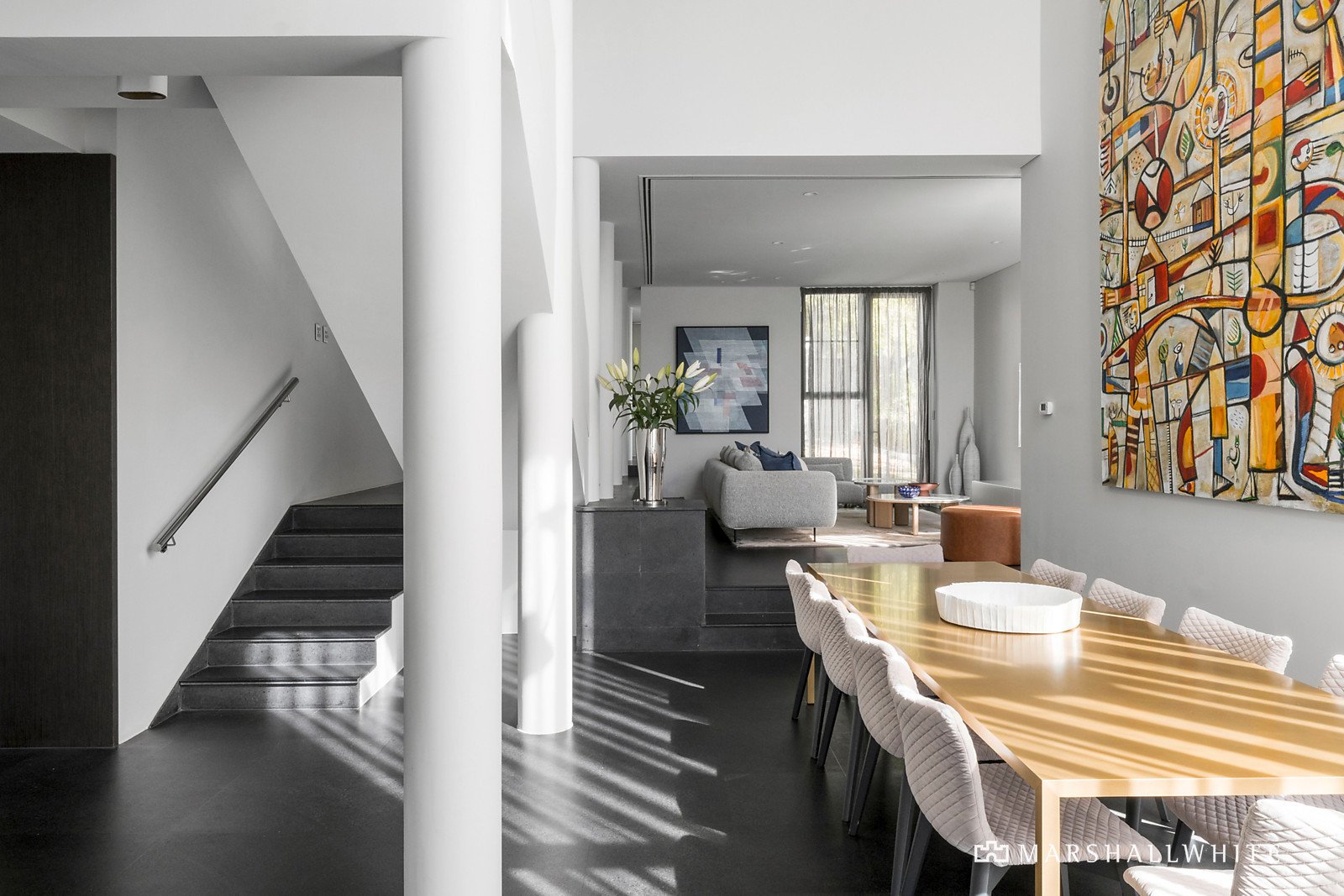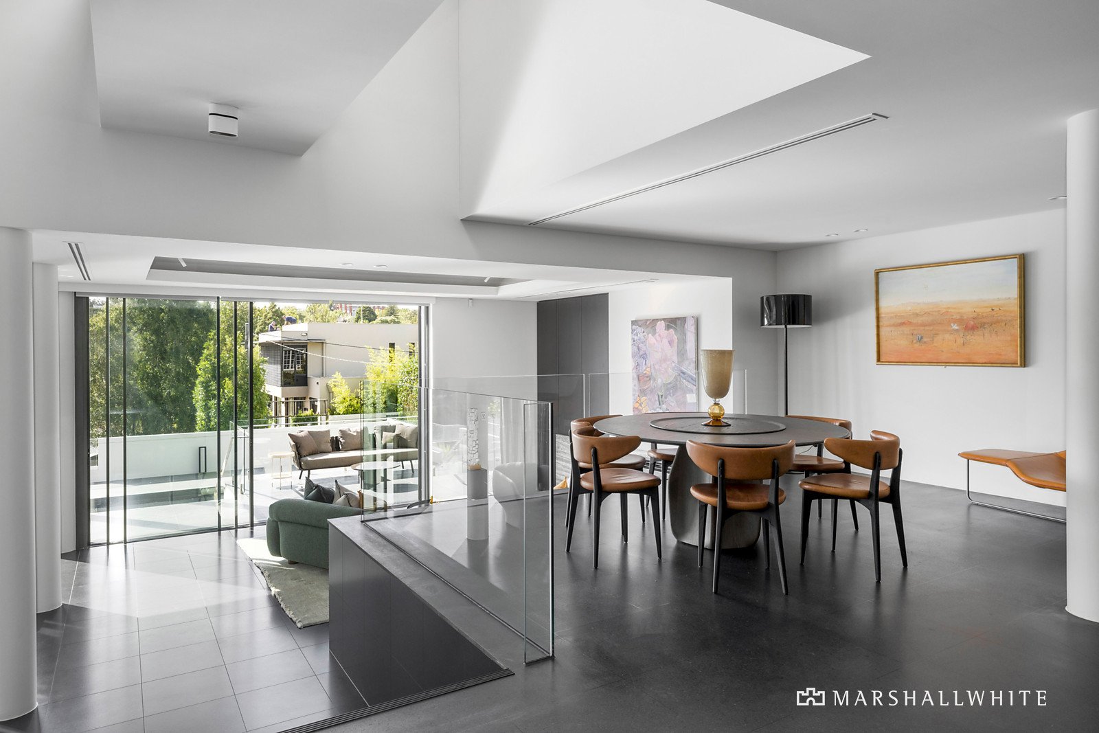 Exclusively positioned in a prestigious cul de sac high above the river, this inspired masterpiece of contemporary design completely reimagined by Studio InArte and Sarah Hunter of Reperio collective, is a feast of soaring voids, expansive free-flowing living spaces, bespoke finishes and breathtaking Yarra River views. The gallery style dimensions and stunning landscaped garden and pool backdrop provide the ultimate low maintenance venue for relaxed family living and indoor-outdoor entertaining on the most lavish scale.