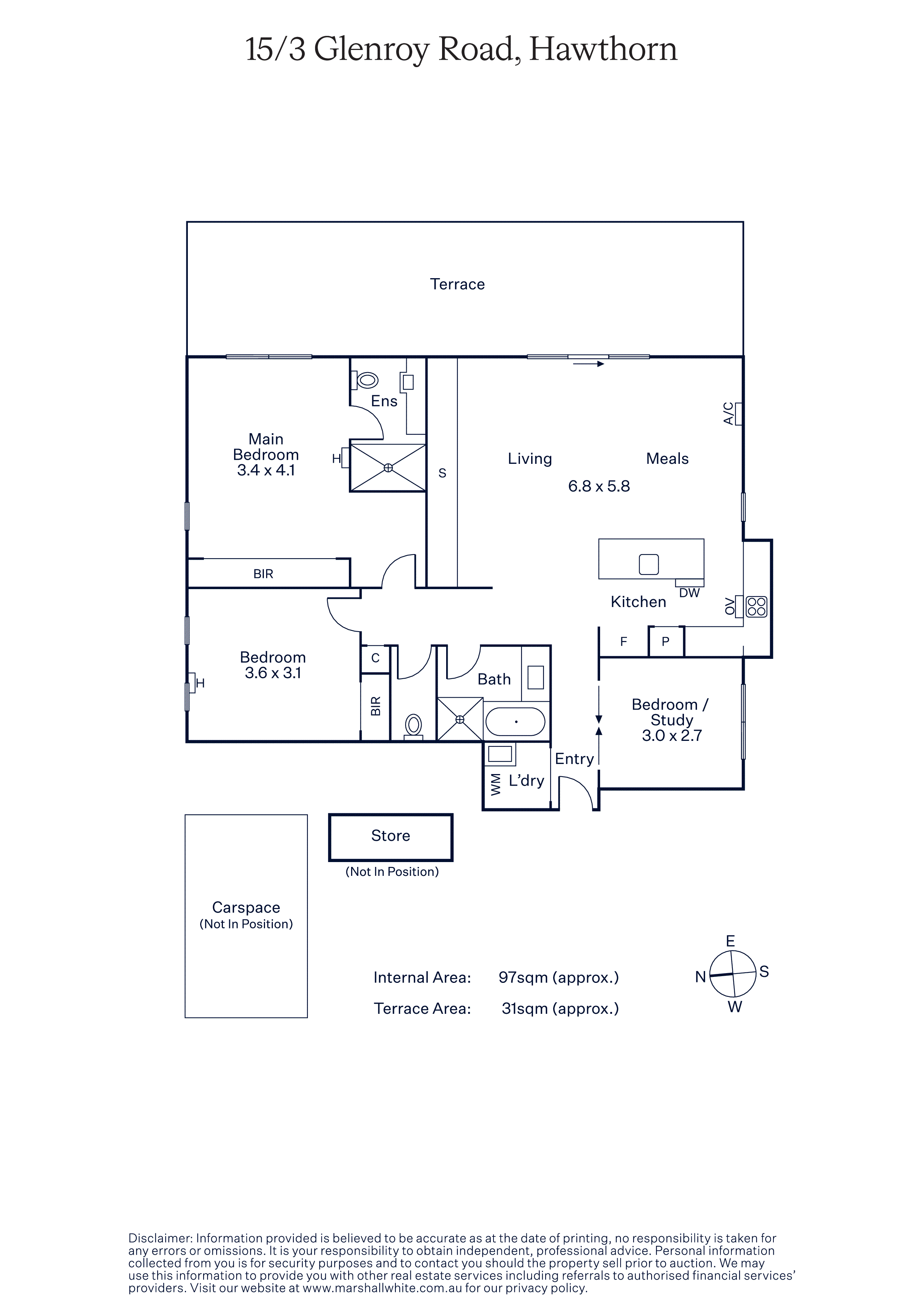 The sunlit and immaculately maintained interior reveals a generous open-plan living and dining room with custom built-in shelves, incorporating a sleek CaesarStone kitchen equipped with European appliances flowing through full-height doors to an expansive terrace - providing a calm and peaceful oasis, perfect for indoor/outdoor dining and entertaining or relaxation. Featuring new carpets throughout, the residence is further enhanced by two double bedrooms (both with BIR plus main with ensuite), flexible third double bedroom/study, a sparkling bathroom and concealed laundry. Additional highlights of this superb apartment include split system heating and cooling, video intercom, secure basement car parking plus separate lock-up storage room, visitor parking and internal lift.