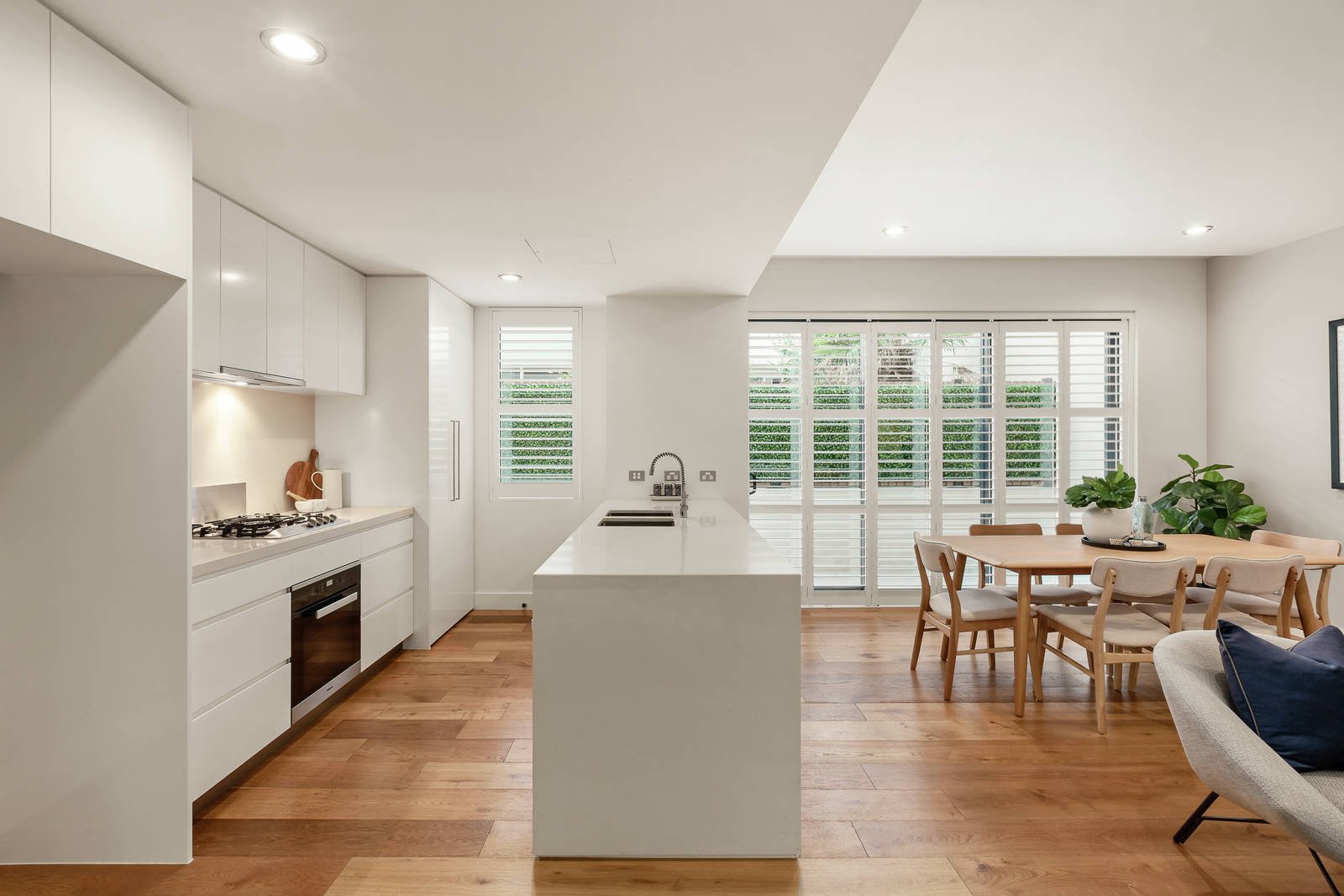 The spacious tri-level capitalises on a northern orientation to its living areas featuring full height picture windows filled with natural light throughout the year all while maintaining privacy between levels. Also featuring wide oak floorboards in the generous ground floor living and dining area which opens to front and back terraces and incorporates a sleek kitchen equipped with CaesarStone bench tops and quality Miele appliances plus a laundry and powder room. The second level has a home office/study area and main bedroom with northern balcony, WIR and fully tiled ensuite. Two further bedrooms with retreat/BIRs, one with north and south balconies plus a family bathroom situated on the top level.