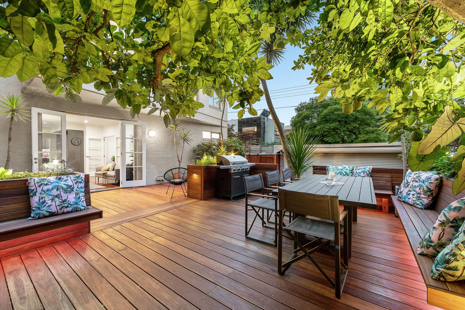 Behind the high ivy-covered wall, there is an overwhelming sense of peace and quiet. The wide central hall flows through to an expansive formal sitting and dining room opening to a sunny deck. The gourmet kitchen appointed with stone benches, a 90cm Smeg oven and butler's pantry/laundry and the casual living and dining room extend out to a generous decked garden with built in seating, all surrounded by greenery, an idyllic setting for outdoor dining and entertaining. Spacious and light-filled accommodation upstairs comprises the main bedroom with stylish en suite and walk in robe, two additional bedrooms with robes and a designer bathroom with freestanding bath.