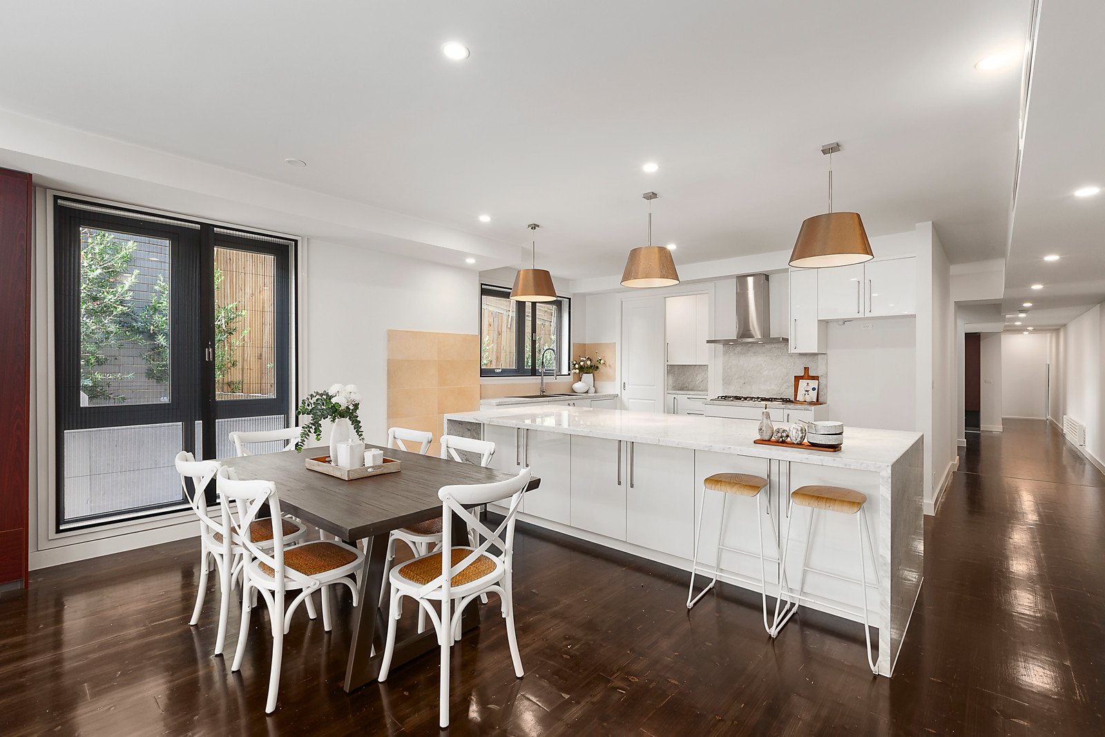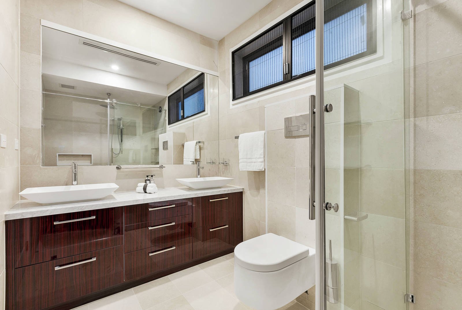 Perfectly situated near Westfield Shopping Centre, Box Hill station, both Koonung & Doncaster Secondary College, parks, buses and freeway access, it includes an alarm, monitored CCTV, hydronic heating, zoned RC/air-conditioning, ducted vacuum, powder-room, laundry, water tank and storage.