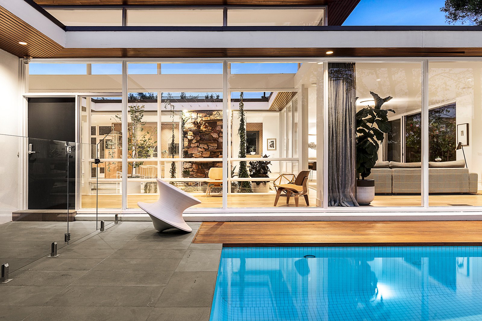Outstanding revival has put the luxe factor into this Mid-Century home, where original architecture is matched with a high standard of contemporary quality. This is a rare opportunity to own an iconic home without peer. The design is pure Palm Springs, and the court location near South Road's schools is private and central. Newly completed renovation with interior design by Chelsea Hing retains the single-level appeal and enhances the five living and dining areas, four bedrooms including a tranquil parents' retreat, study, and spacious garden with a new pool. The original design by architect Walter P Pollock is as superb today as it was in the 1960s, with a large entry foyer, central courtyard, and big windows bringing light into living areas. The blend of old and new is seamless, on show in the lounge and dining rooms, meals area with banquette seating and oak feature wall, TV room/retreat, kitchen and butler's pantry. New excellence has created a spacious multipurpose room with its own entry that could be your quiet retreat, large home office, gym or media room. Incredible attention to details shows in the new ensuite with Italian lighting, innovative storage, Rogerseller bath and two stone-topped vanities. That same sense of style and quality has created a dream-come-true dressing room with 21 drawers, shoe storage, and leather hooks and handles. Garden spaces enhance this luxe address, with the pool surrounded by decking and bluestone paving, a large terrace, and cooling grass and established trees. Prestige fitout reveals Miele ovens, gas and induction cooktop, keyless entry, quality joinery including a homework station next to the kitchen, and double garage with the option of space for additional cars.