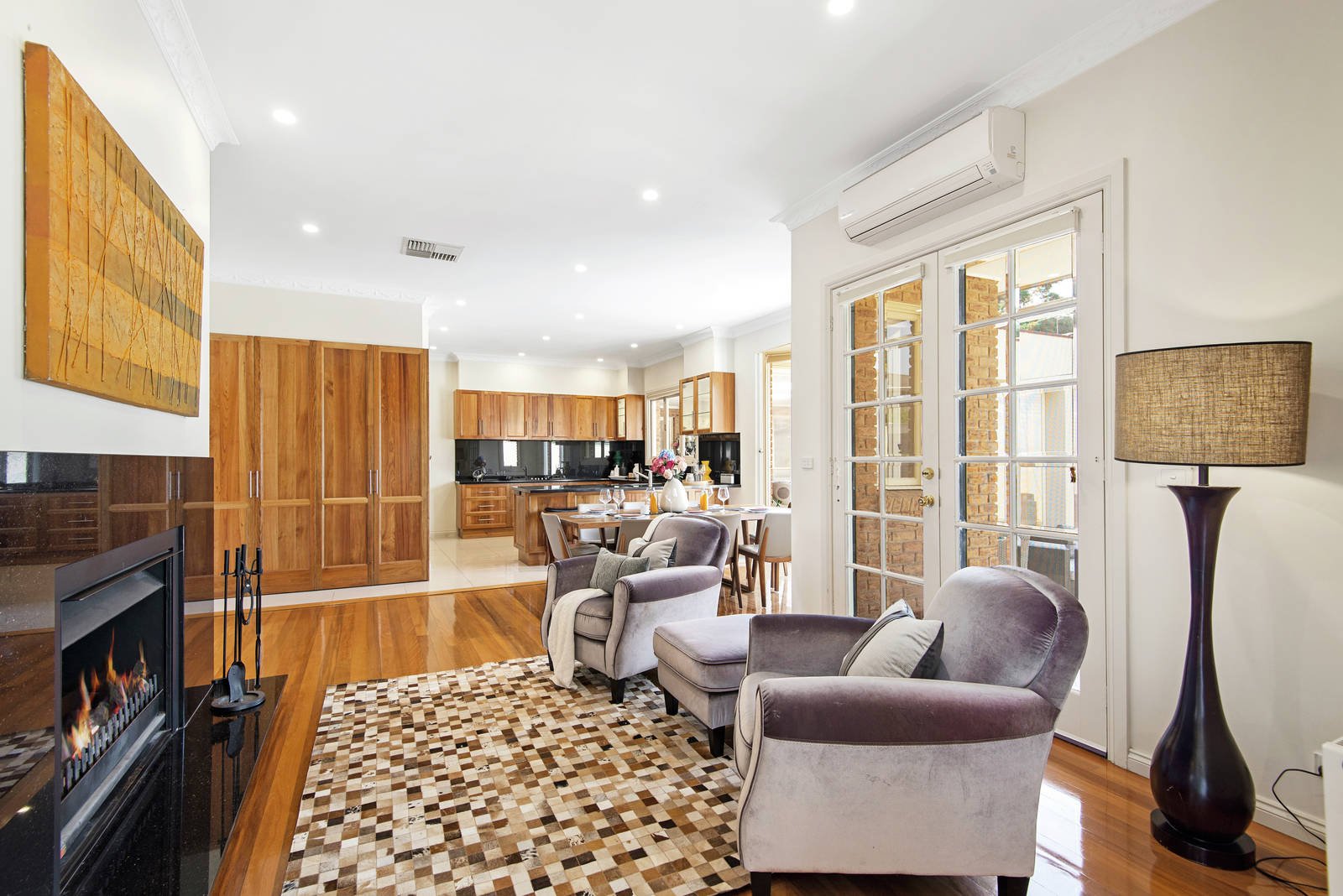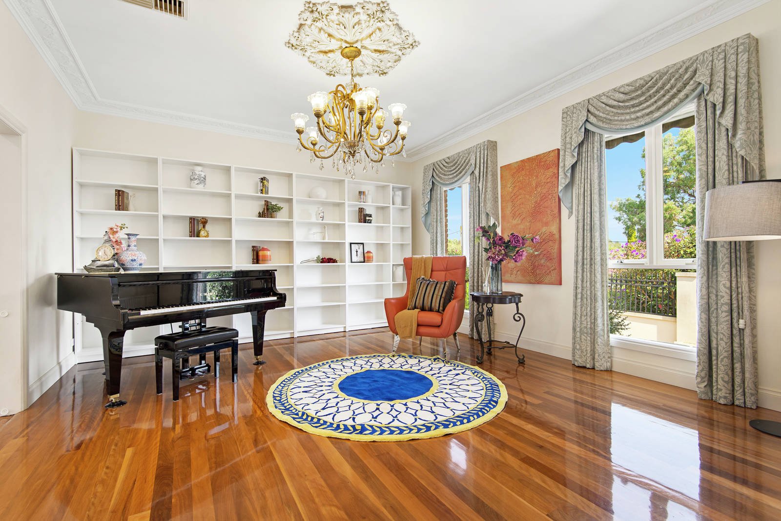 Elevated on an enormous double block and framed by spectacular yet low-maintenance gardens, it features a clever layout with four stunning living/dining areas, an extensive high-end kitchen with a butler's pantry, a custom-fitted home office (or fifth bedroom), an exquisite master suite, oversized all-weather alfresco deck and resort-style backyard with a heated salt-chlorinated pool and spa.