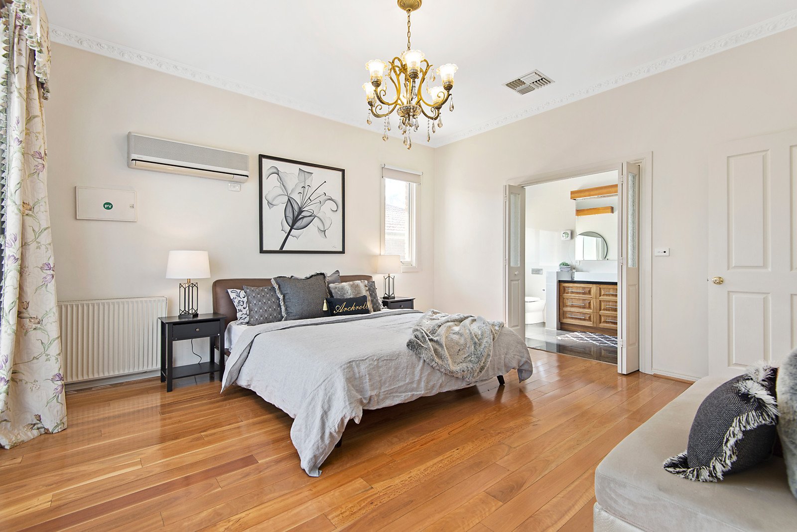 Versatile formal and casual living options include a rumpus room with bar and family room with open fireplace, while versatility continues outdoors with multiple options including the enclosed deck with cafe blinds and bifold doors. Full of natural light and boasting 10ft ceilings, chandeliers, and decorative cornices and ceilings, every inch of this spectacular home exudes luxury, comfort, and convenience, with generous bedrooms (BIRs), Brush Box timber floors, hydronic heating, evaporative cooling, split system heating and air conditioning, granite countertops, a deluxe fully-tiled ensuite, and central spa bathroom, built-in convection microwave and double oven, 900mm gas/induction cooktop, keyless entry and abundant built-in storage.