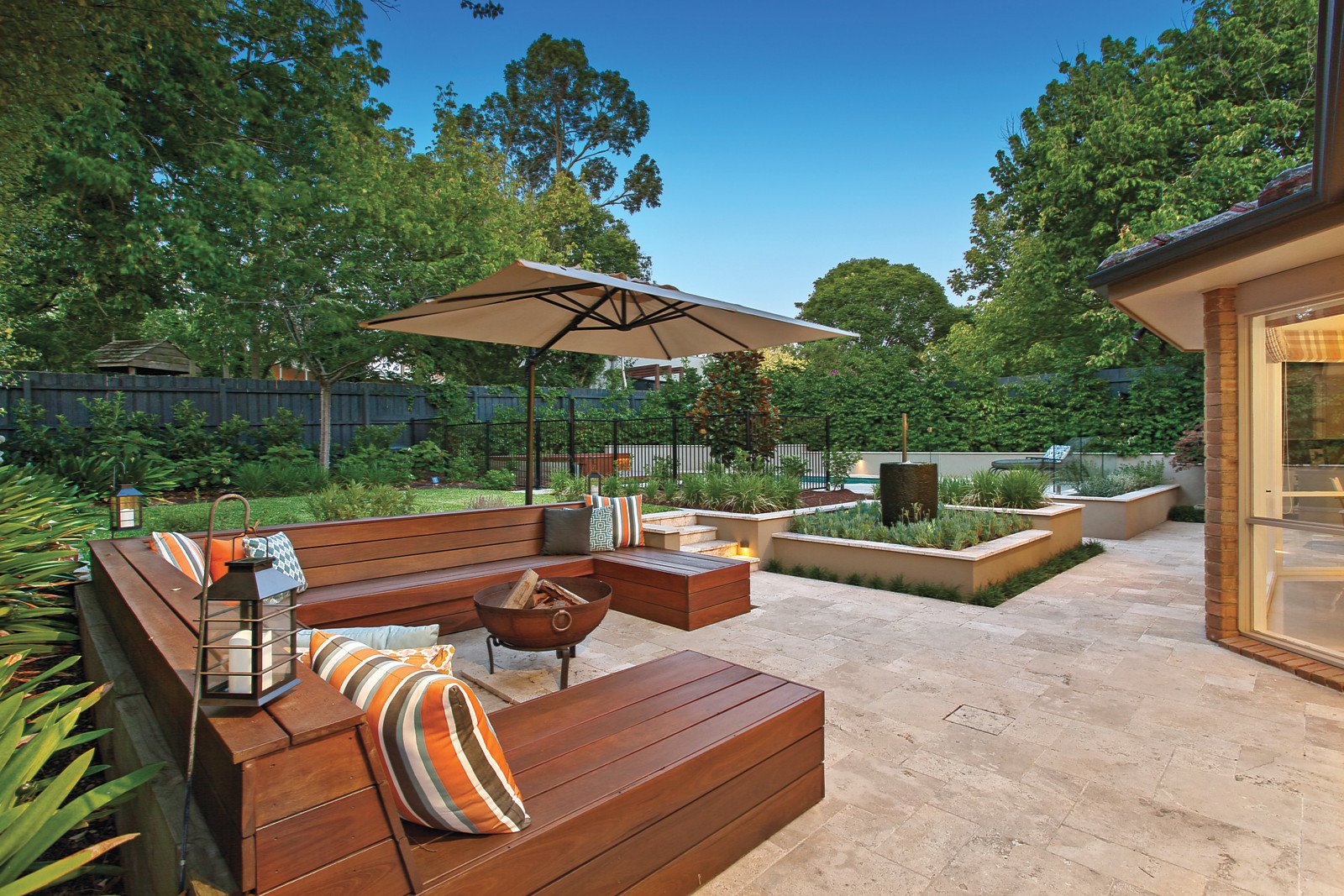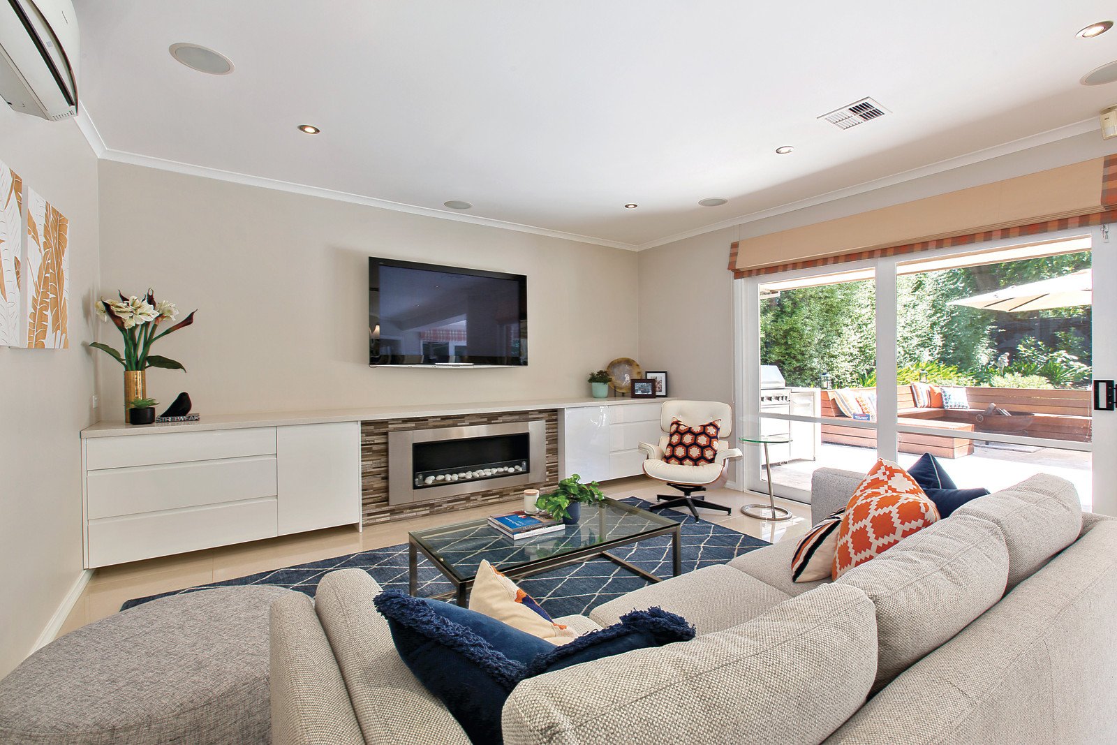 Gleaming over-sized porcelain tiles introduce a sleek contemporary tone to the entrance hall which leads to a glamorous formal sitting and dining room with open fireplace and study or 5th bedroom with adjacent stylish bathroom. The sublime gourmet kitchen boasting premium Miele appliances and stone benches, a light-filled dining area and expansive living space with an ethanol fireplace open to the deep private landscaped north garden with built in seating, water feature and picturesque solar heated pool. Natural light streams through the superbly proportioned main bedroom with luxurious en-suite and walk in robe, a second gorgeous bedroom with en-suite and built in robe, two additional double bedrooms with built in robes and a chic family bathroom.