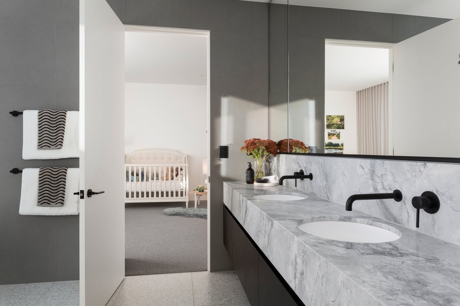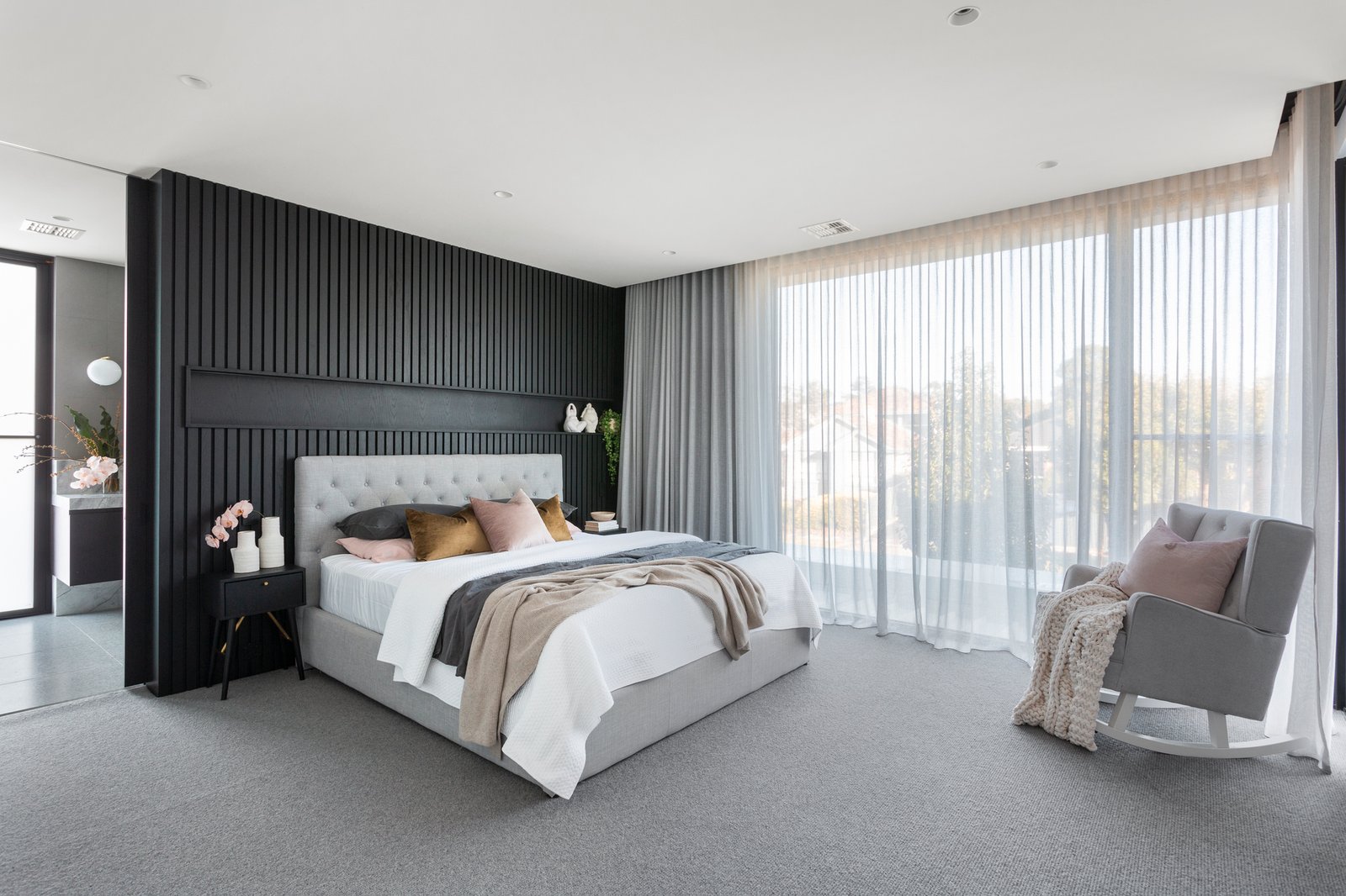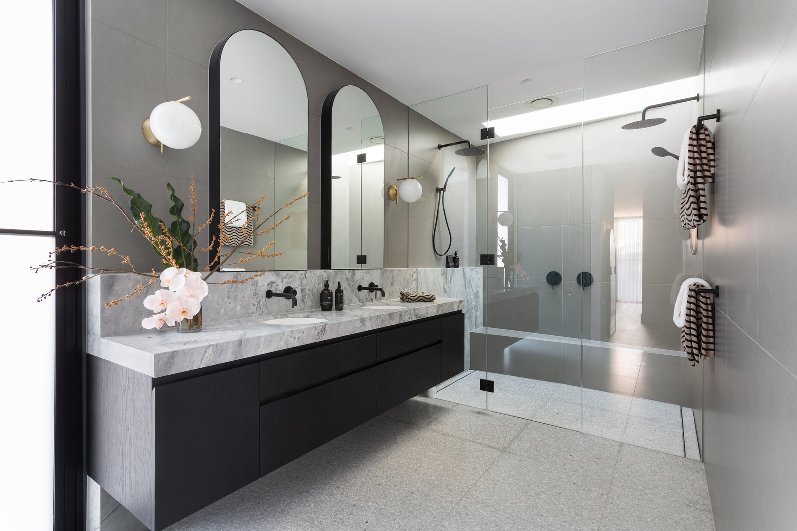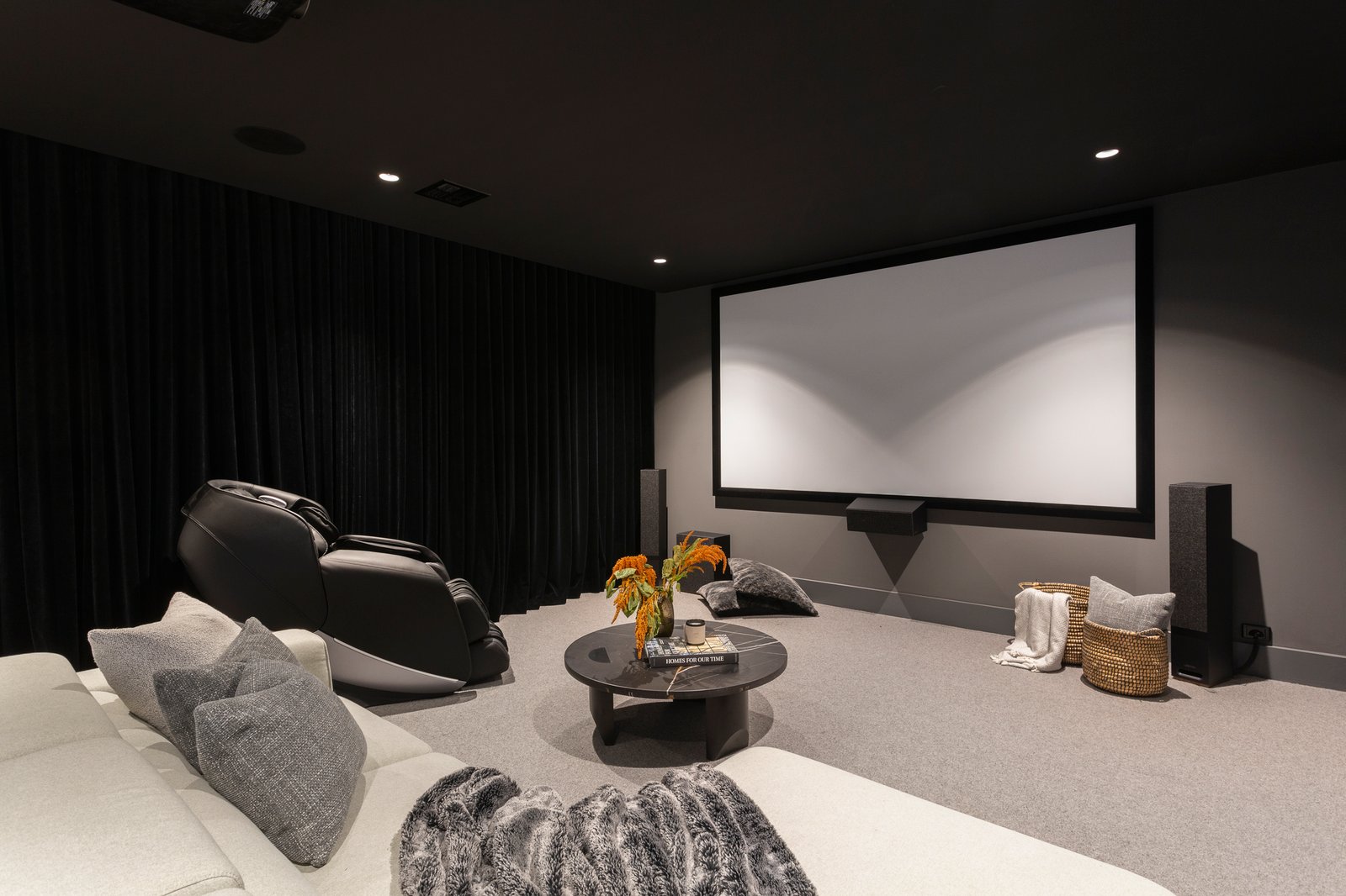 An oversized black pivot door makes a dramatic statement as it opens to a generous reception foyer and to one side an evocative home theatre. Expansive in scale, the light-filled open plan living and dining room features a gas pebble fire, 3m ceilings, oak floors, and a fitted wet bar. Catering impeccably to any culinary challenge, the sublime gourmet kitchen is appointed with Super White Dolomite benches, Miele appliances, integrated fridge/freezer, Zip tap and a butler’s pantry. The living spaces extend out through wide glass sliders to a large undercover bluestone paved terrace with BBQ kitchen, bar fridge and heaters, the ideal venue for all weather al fresco dining overlooking the landscaped northeast private garden and picturesque heated self-cleaning pool. An abundance of luxurious family accommodation upstairs comprises the beautiful main bedroom with designer en suite, deluxe dressing room, a second bedroom with stylish en suite and built in robe, two additional bedrooms with robes and a stunning shared en suite, a spacious retreat and fitted home office.