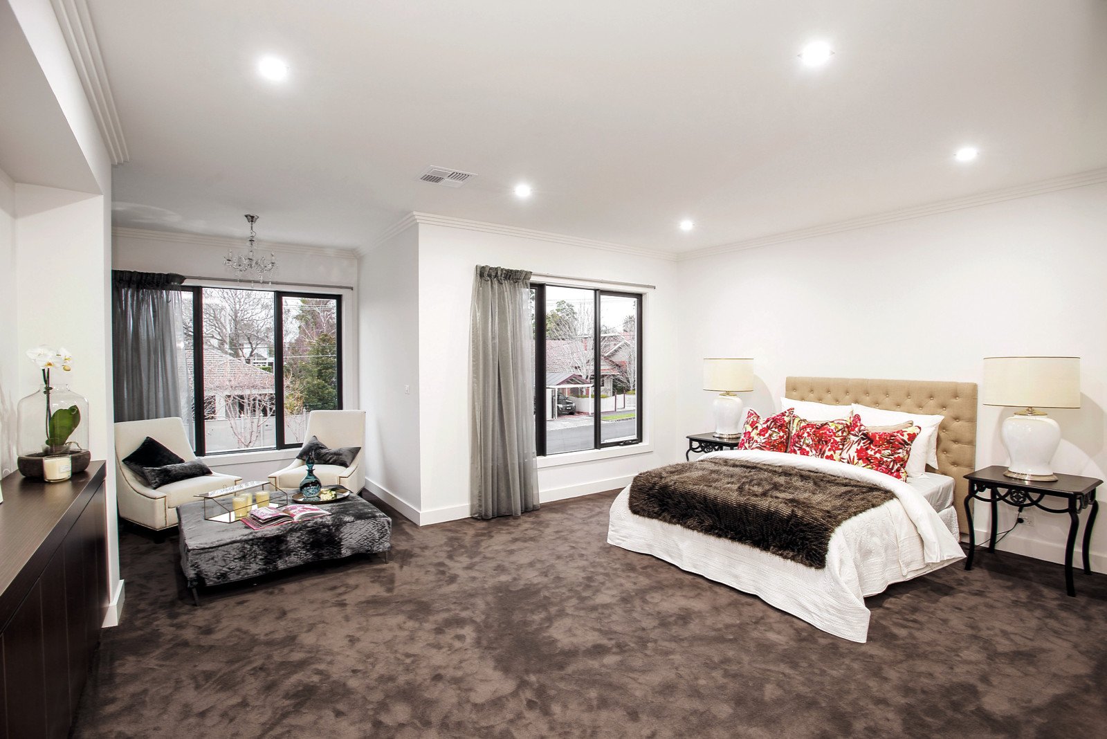 The lavishly appointed, impressively proportioned and supremely stylish dimensions of this imposing brand new, architect designed residence provide incomparable family luxury close to great schools, parks, transport, Hampton St shops and cafes. Highlighted by wide European oak floors, extra high ceilings and sheer drapes, a touch of glamour defines the expansive sitting room with reading alcove and gas fireplace. Equally imposing, the sun-drenched living and dining spaces incorporate a gourmet European kitchen boasting an evocative titanium granite bench-top and butler's pantry. The picturesque north-facing private landscaped garden features a fabulous covered terrace with full BBQ kitchen, ideal for year round al fresco dining. A downstairs bedroom is accompanied upstairs by a beautiful main bedroom suite with fitted walk in robes and marble en-suite, three additional double bedrooms with built in robes, a marble bathroom and spacious den or home cinema. Comprehensively appointed with ducted heating and cooling, alarm, HD security camera, ducted vacuum, powder-room, laundry, storage under staircase and internally accessed double garage.